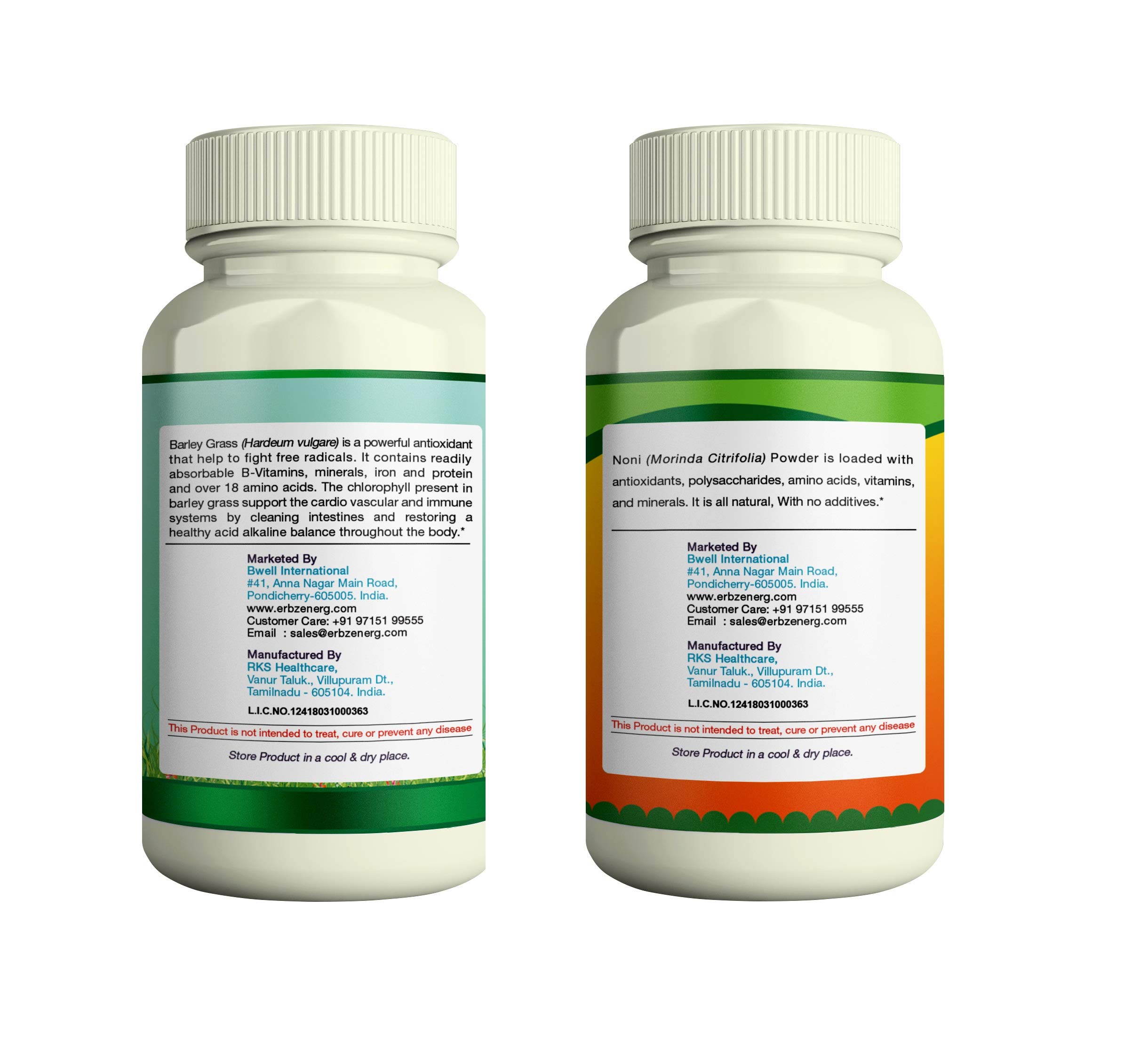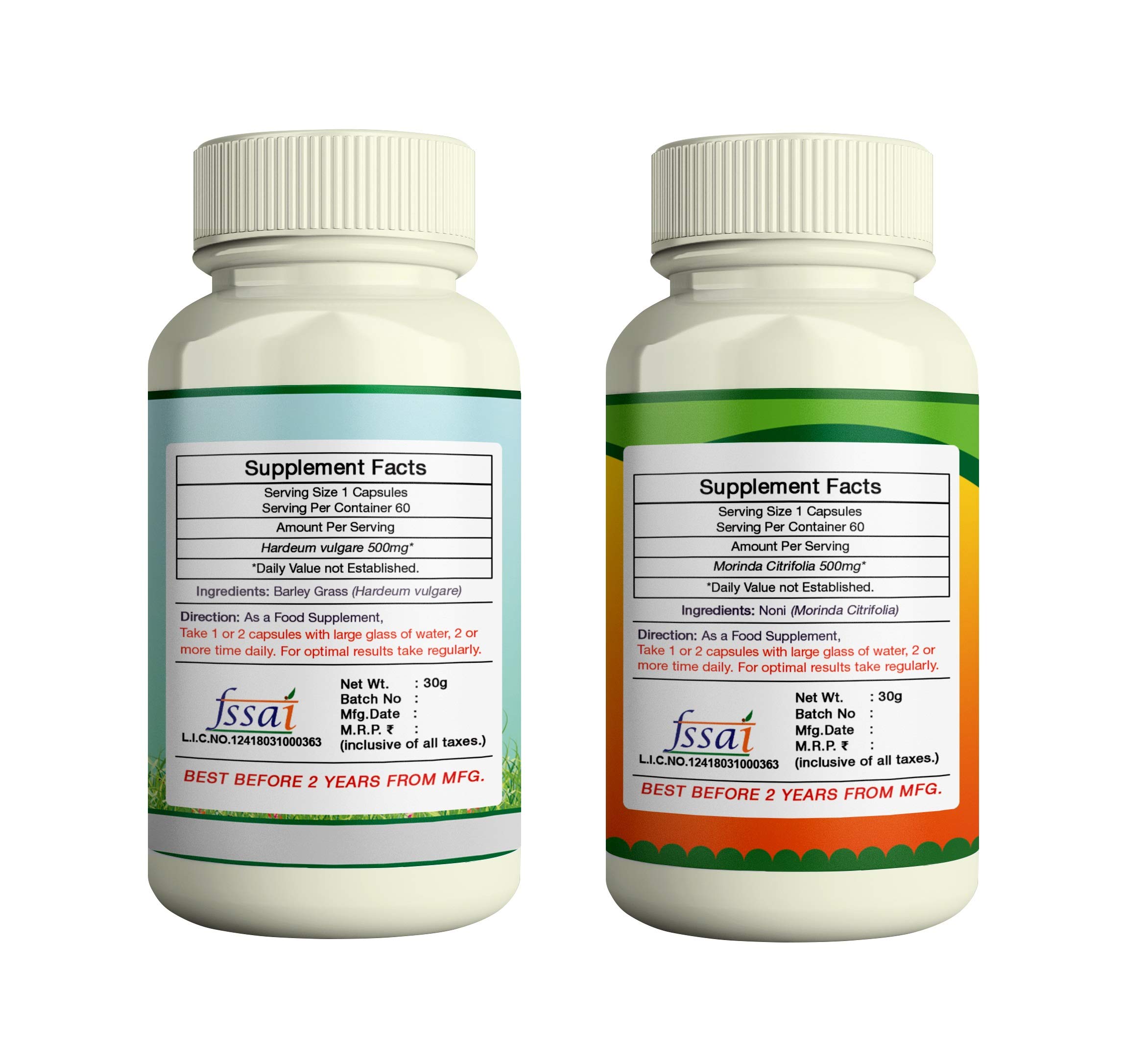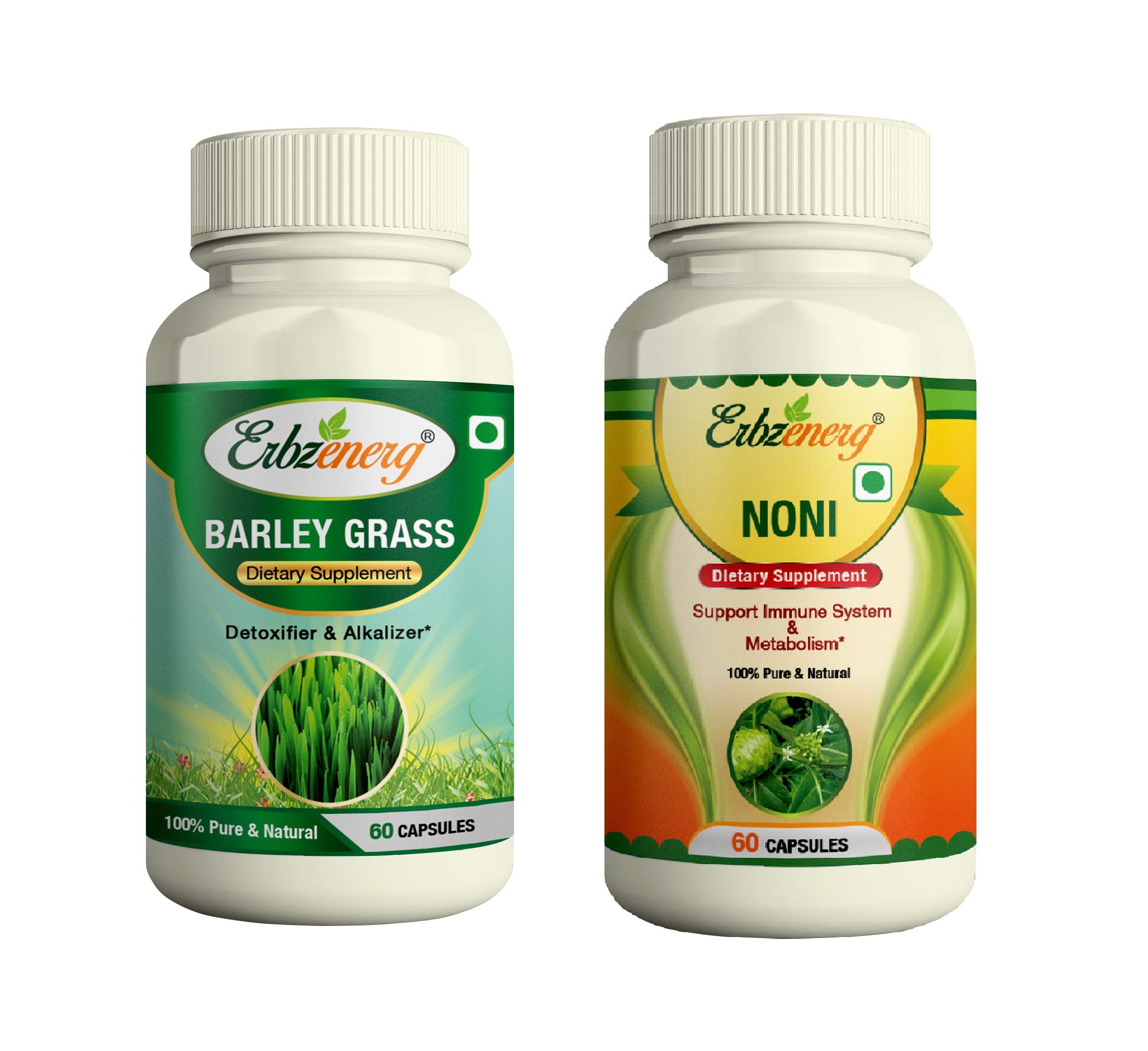ERBZENERG Barley Grass (Hordeum vulgare) 60 Capsules and Noni (Morinda citrifolia) 60 Capsules- (Pack of 1)