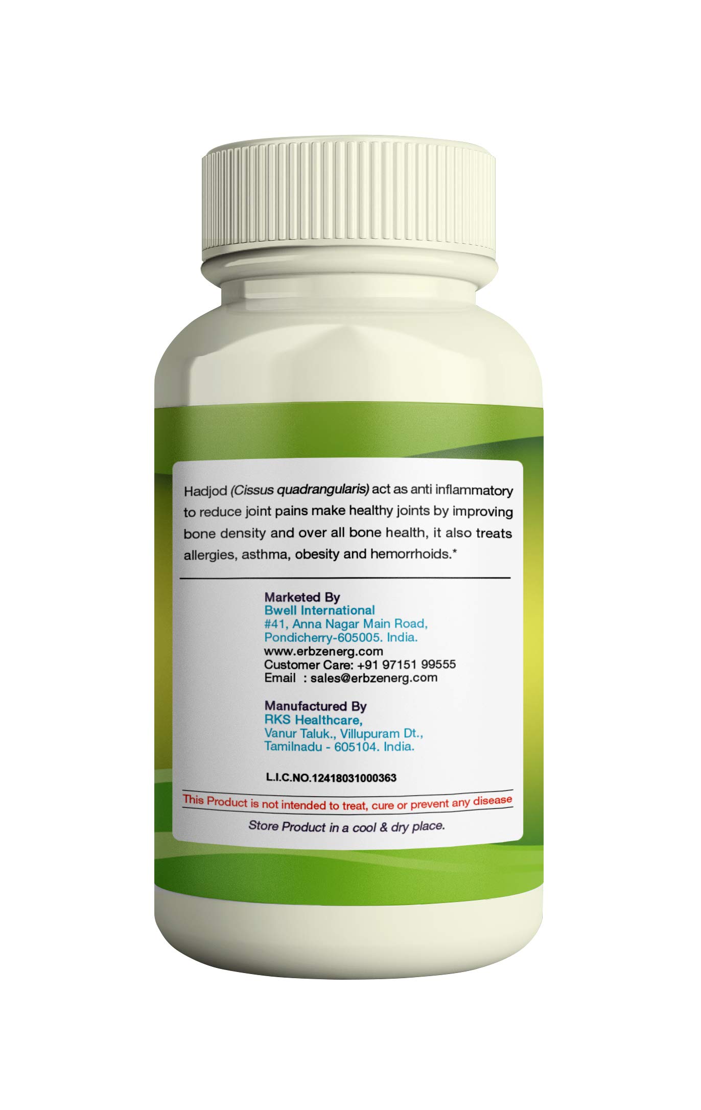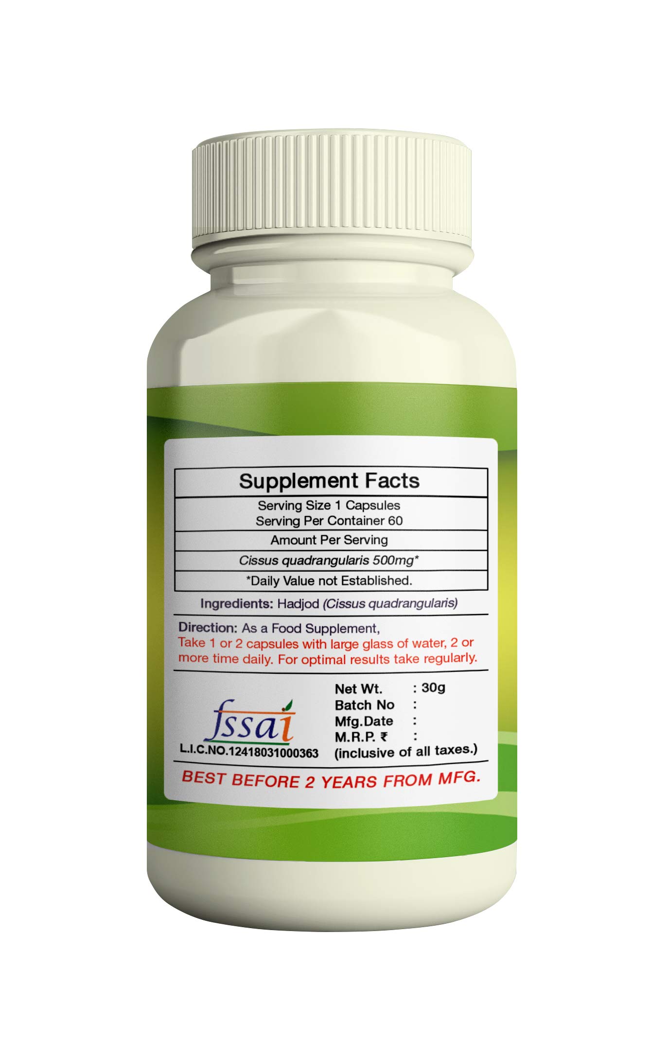 ERBZENERG Cissus (Cissus quadrangularis) pirandai 60 Capsule 500mg (Pack of 2)