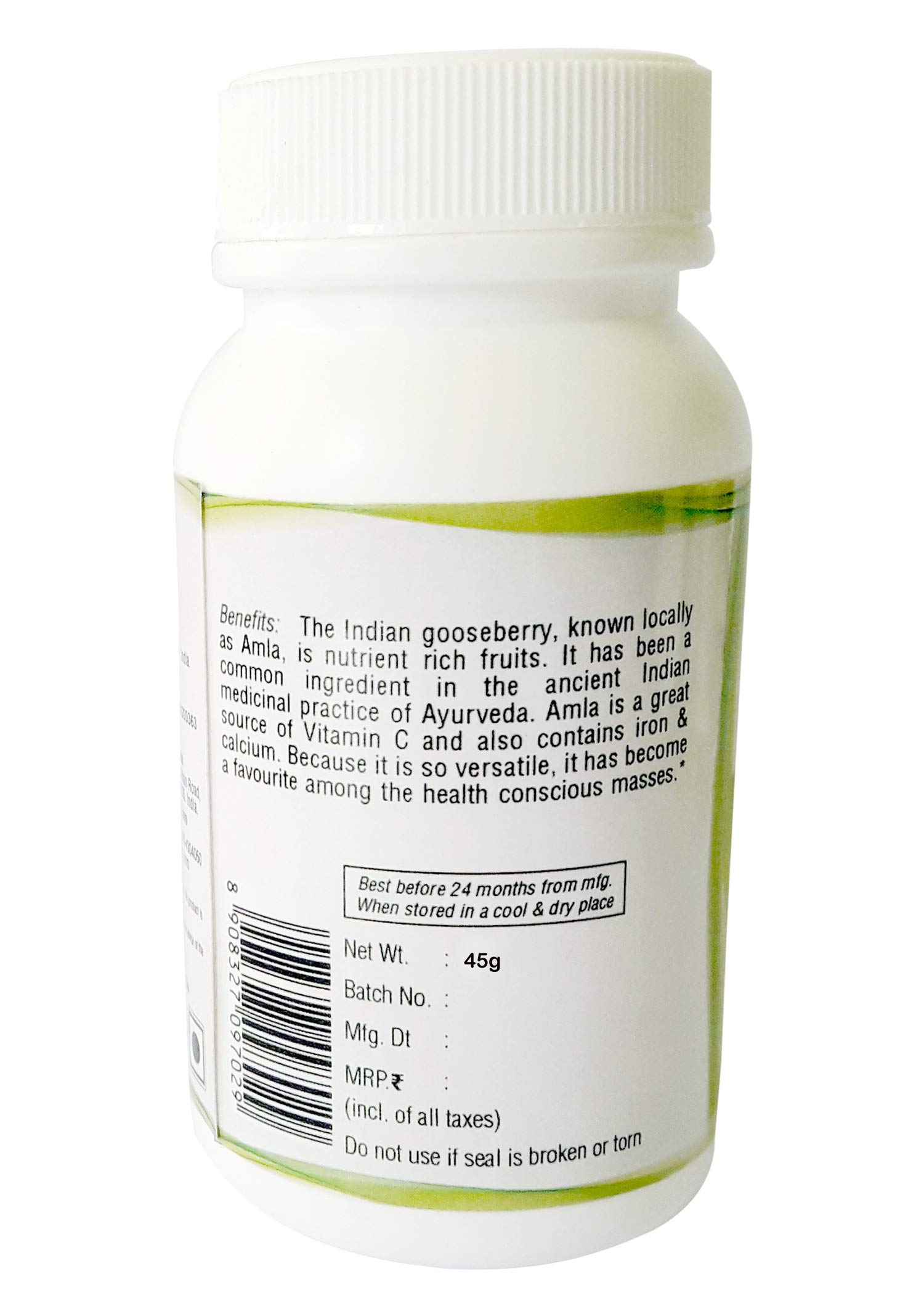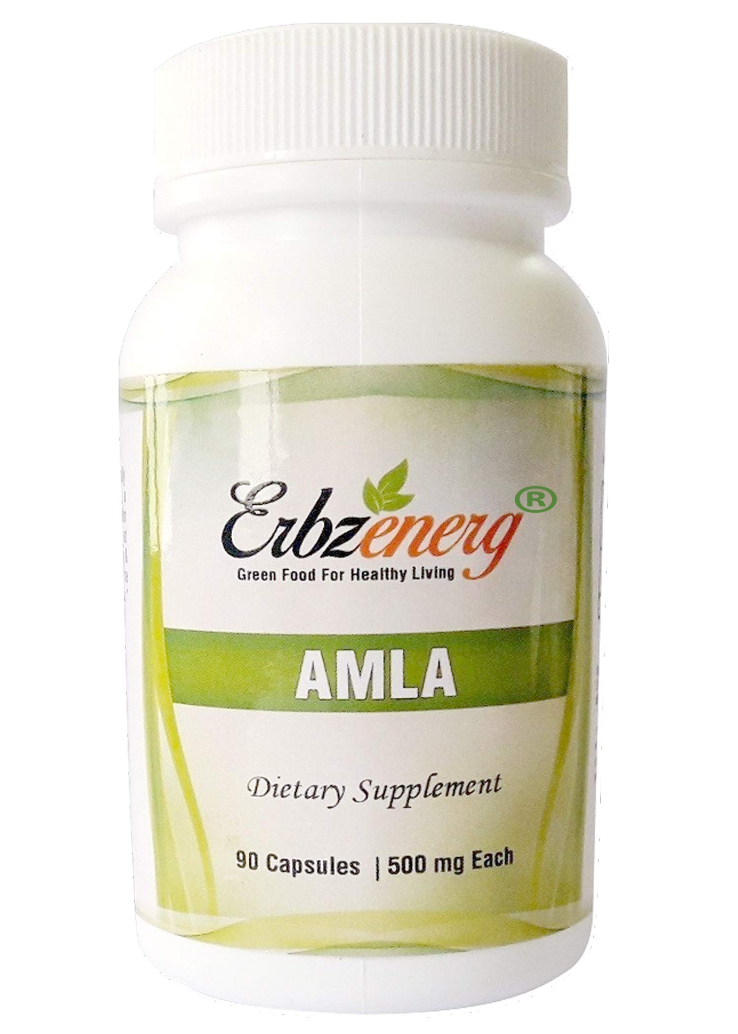 ERBZENERG Amla Capsules (500 MG each). Being a rich source of Vitamin C this can possess several health benefits. The Amla Capsule is a bio-available source of natural Vitamin C that is easily digested and assimilated from one of nature's prime sources of Vitamin C the whole Amla fruit. It contains 20 times more vitamin C than oranges. It is also rich in proteins and fibres. It contains minerals such as Iron Calcium and Phosphorous besides Vitamin A.