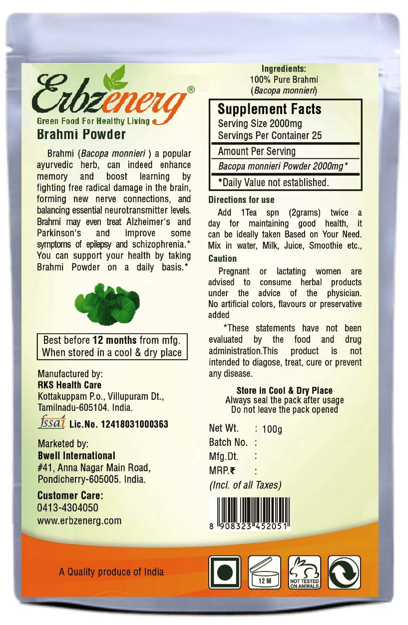 ERBZENERG Organic BRAHMI (Bacopa monnieri) Powder 100G (Pack of 3)