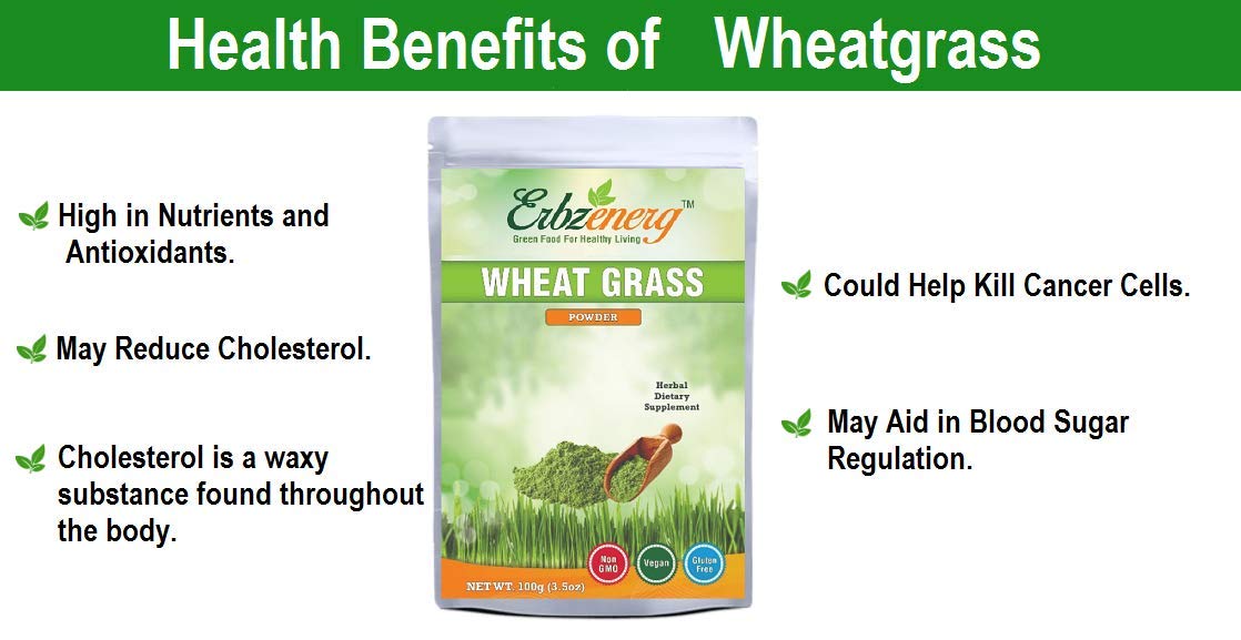 Wheat Grass Powder is an energy and immunity booster supplement. It contains Vitamin A C K E B1 B2 B3 B6 B12 Folic acid Calcium Iron and Chlorophyll. All these nutrients are available in their natural forms and Naturally Acceptable to the Body. Improves immunity It has high in iron and improves Sleep.