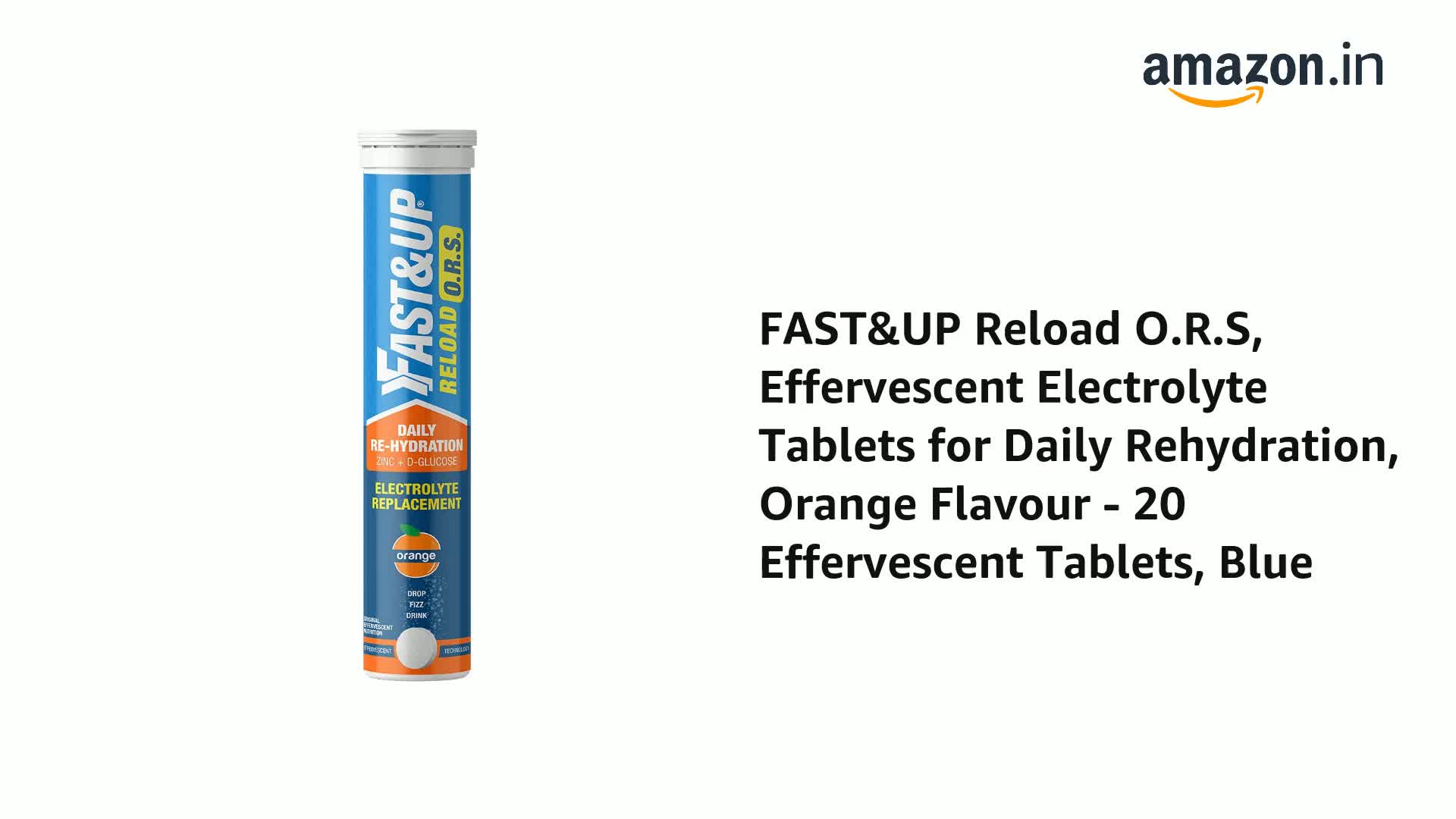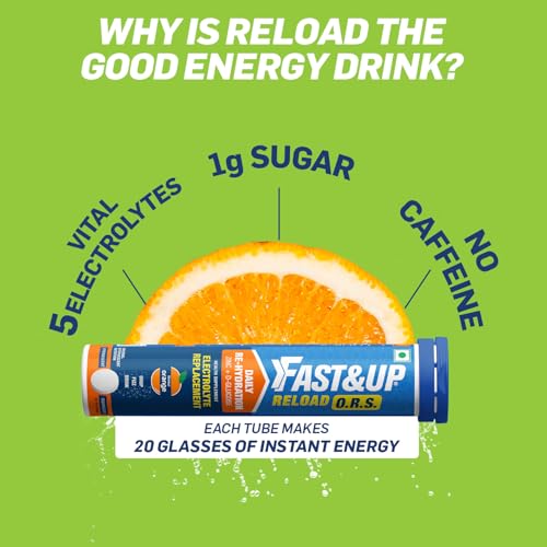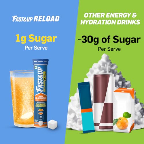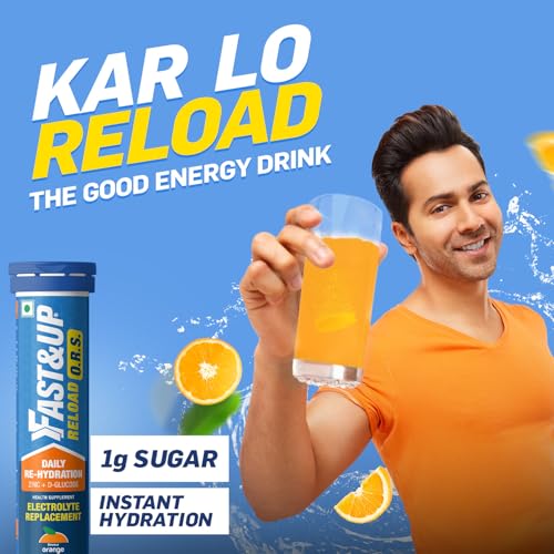 FAST&UP Reload O.R.S Effervescent Electrolyte Tablets for Daily Rehydration Orange Flavour - 20 Effervescent Tablets Blue