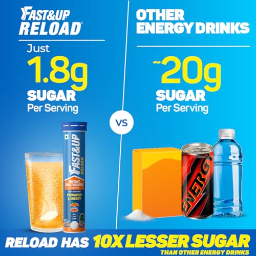Fast&Up Energy Gel - Instant Energy - Nutrition Supplement - 30g Carbs With Maltodextrin - Vegan - Pack of 5 Gels - Strawberry Banana FlavourFast&Up Energy Gel is a carbohydrate based energy gel formulated with a blend of 60 percent maltodextrin and 0.1 percent caffeine which is easy to open and sip during your game. Packed with 102 kcal of instant energy in a single serving gel sachet Energy Gel provides instant energy boost with maltodextrin a carbohydrate that's more quickly absorbed than other carbohydrates. This strawberry banana flavoured energy gel contains caffeine to keep you alert and improve your focus during your game. Formulated using proprietary technology Fast&Up Energy Gel is easily absorbed and digested without any stomach upset. There is no need for any extra preparation of water all you need to do is just bite squeeze and sip. It is easy-to-carry highly-effective and provides you with instant energy that digests easier than any other sports energy gel. The result is fast acting and long-lasting energy with peak performance without any gastrointestinal discomfort. This high performance energy gel with tasty flavour is a great choice if you want to enhance your endurance performance and prolong your energy levels.Fast&Up Reload electrolyte energy and hydration - sports drink - 20 effervescent tablets - Orange flavourFast&Up is India's first effervescent nutrition brand to keep you active. Fast&Up Reload is a hypotonic hydration drink with the ideal combination of Electrolytes Vitamins Minerals and Antioxidants to rehydrate and maintain electrolyte balance during the workout and your everyday active lifestyle. It is India's first Informed choice electrolyte drink. Fast&Up Reload supplement is available in effervescent tablet form which helps you to replenish electrolytes without any digestive issues. With its unique formulation this electrolyte sports drink ensures instant hydration. Because of its hypotonic nature Reload increases the rate at which water is absorbed by the body and speeds up the rehydration process. Evidence suggests that a hypotonic sports drink provides minimally to moderately faster fluid absorption than more concentrated isotonic-hypertonic sports drinks. Fast&Up Reload contains Calcium and Magnesium along with electrolytes to help prevent cramps. Vitamin C in this sports electrolyte drink helps reduce muscle soreness and fatigue. This easy to carry electrolyte drink understands the serious needs of hydration and is uniquely formulated without any overloading of sugar. Fast&Up Reload can be consumed by anyone during workout or anytime during the day by someone who leads an active life to help fight exhaustion