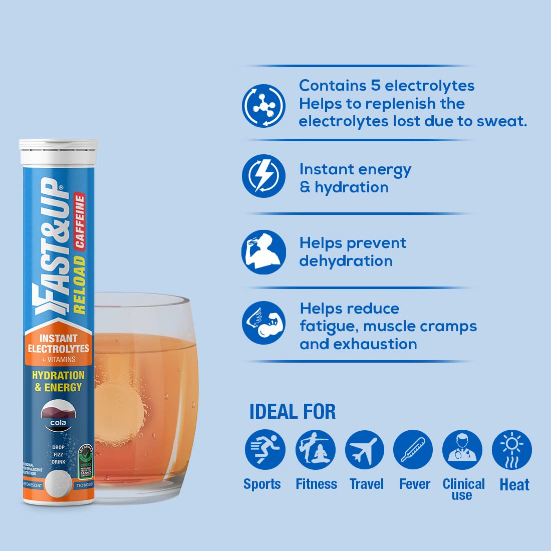 Fast&Up Vitalize - Immunity Essential Multivitamin For Men & Women (20 Effervescent Tablets - Orange Flavor) - 21 Vital Vitamins & Minerals with Vitamin C D & Zinc For Daily Health & ImmunityFast and Up Vitalize is an effervescent daily multivitamin supplement with a combination of 12 vitamins 9 minerals and a natural nitrate rich beetroot extract for overall health and maintenance. This daily multivitamin supplement is made with effervescent technology which provides faster absorption greater effectiveness and significant nutritional benefit better than any other conventional and traditional form of multivitamin supplementation. Specifically made to provide the daily nutrient support Fast and Up Vitalize daily multivitamins help bridge the nutritional gap lacking in todayâs food and diet practices. This daily multivitamin drink is a perfect supplement to provide with an optimal supply of the daily vitamins and minerals as without which our energy levels can drop; it can make us feel sick or tired leading to a serious deficiency if avoided for a longer period of time. With the goodness of daily multivitamins. Note: Product outer packaging may vary as per stock availabilityFast&Up Reload electrolyte energy and hydration - caffeine - sports drink - 20 effervescent tablets - Cola flavourFast&Up is India's first effervescent nutrition brand to keep you active. Fast&Up Reload is a hypotonic hydration drink with the ideal combination of Electrolytes Vitamins Minerals and Antioxidants to rehydrate and maintain electrolyte balance during the workout and your everyday active lifestyle. It is India's first Informed choice electrolyte drink. Fast&Up Reload supplement is available in effervescent tablet form which helps you to replenish electrolytes without any digestive issues. With its unique formulation this electrolyte sports drink ensures instant hydration. Because of its hypotonic nature Reload increases the rate at which water is absorbed by the body and speeds up the rehydration process. Evidence suggests that a hypotonic sports drink provides minimally to moderately faster fluid absorption than more concentrated isotonic-hypertonic sports drinks. Fast&Up Reload contains Calcium and Magnesium along with electrolytes to help prevent cramps. Vitamin C in this sports electrolyte drink helps reduce muscle soreness and fatigue. This easy to carry electrolyte drink understands the serious needs of hydration and is uniquely formulated without any overloading of sugar. Fast&Up Reload can be consumed by anyone during workout or anytime during the day by someone who leads an active life to help fight exhaustion