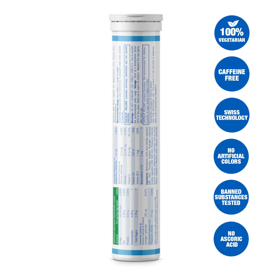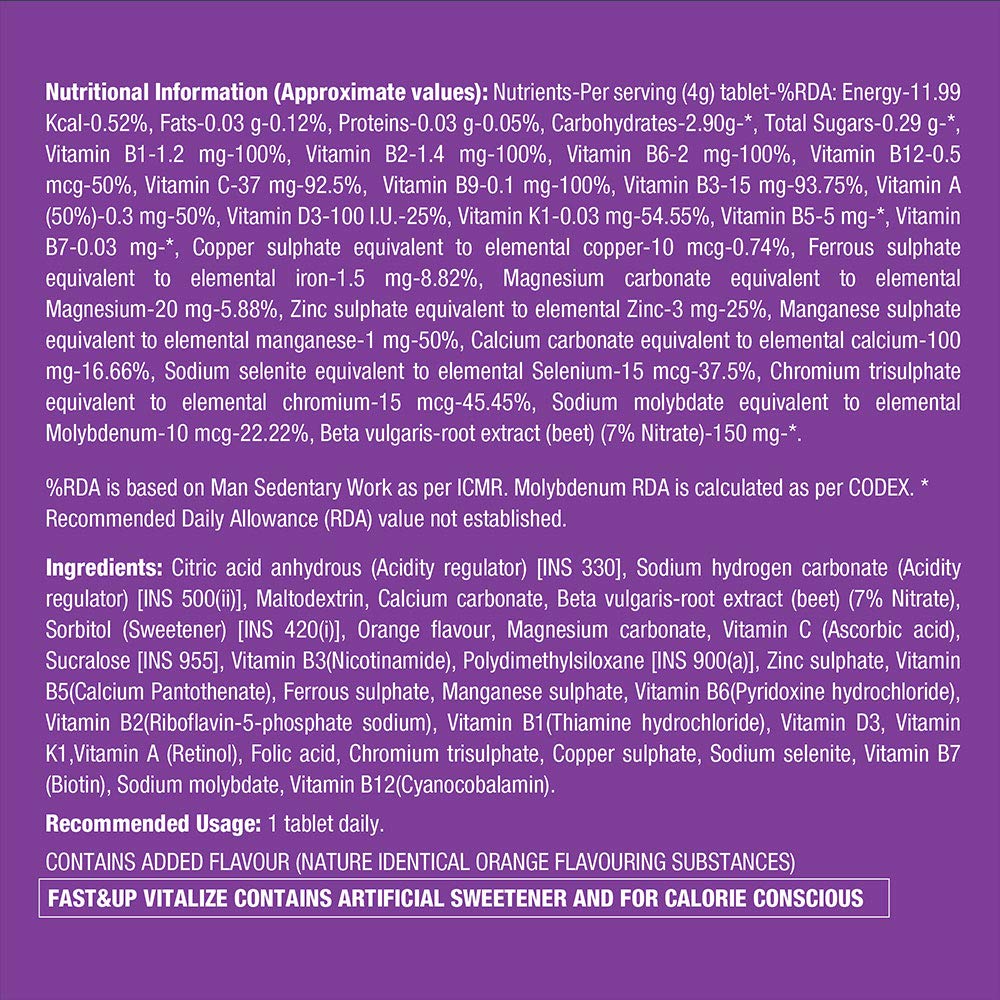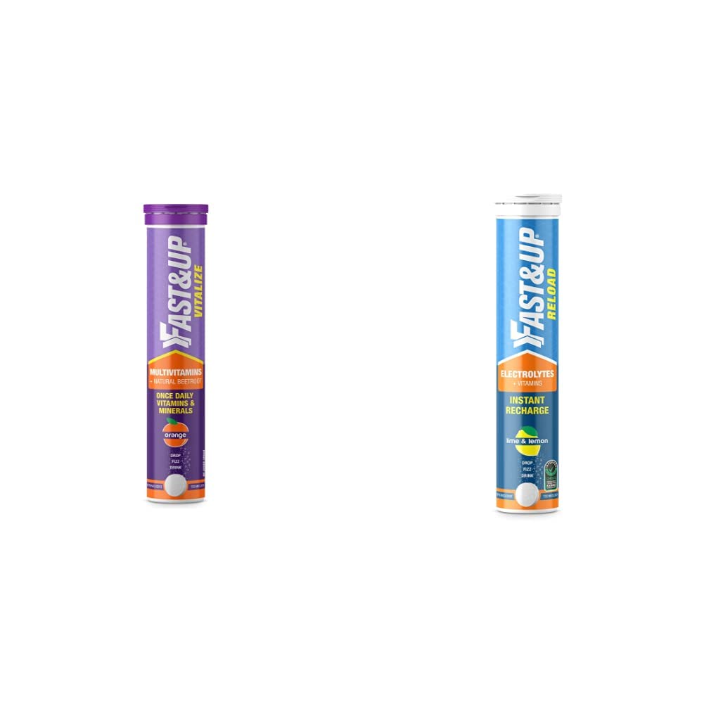 Fast&Up Vitalize Multivitamin Supplement One daily 21 vitamins and minerals Natural Beetroot Extract 20 Tablets Orange Flavour & Reload electrolyte energy and hydration sports drink 20 tablets