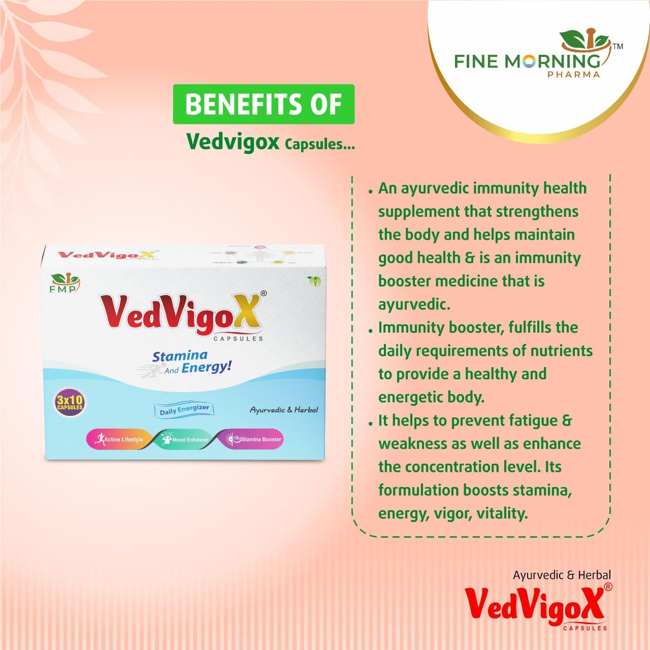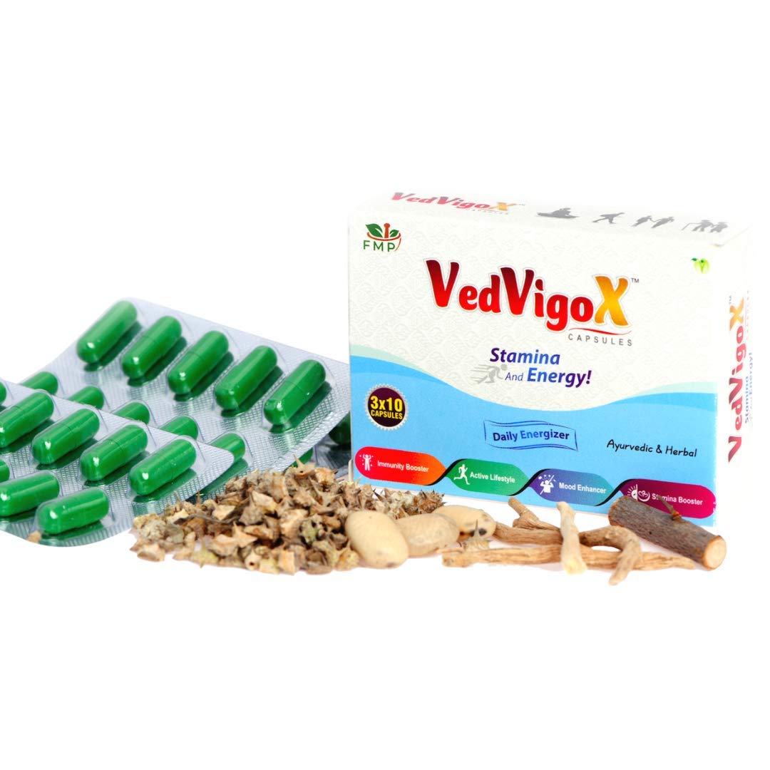 VedVigoX Capsules- It is an Ayurvedic formulation contains herbal extracts that helps to reduce stress and anxiety by reducing the cortisol levels while boosting energy and stamina.