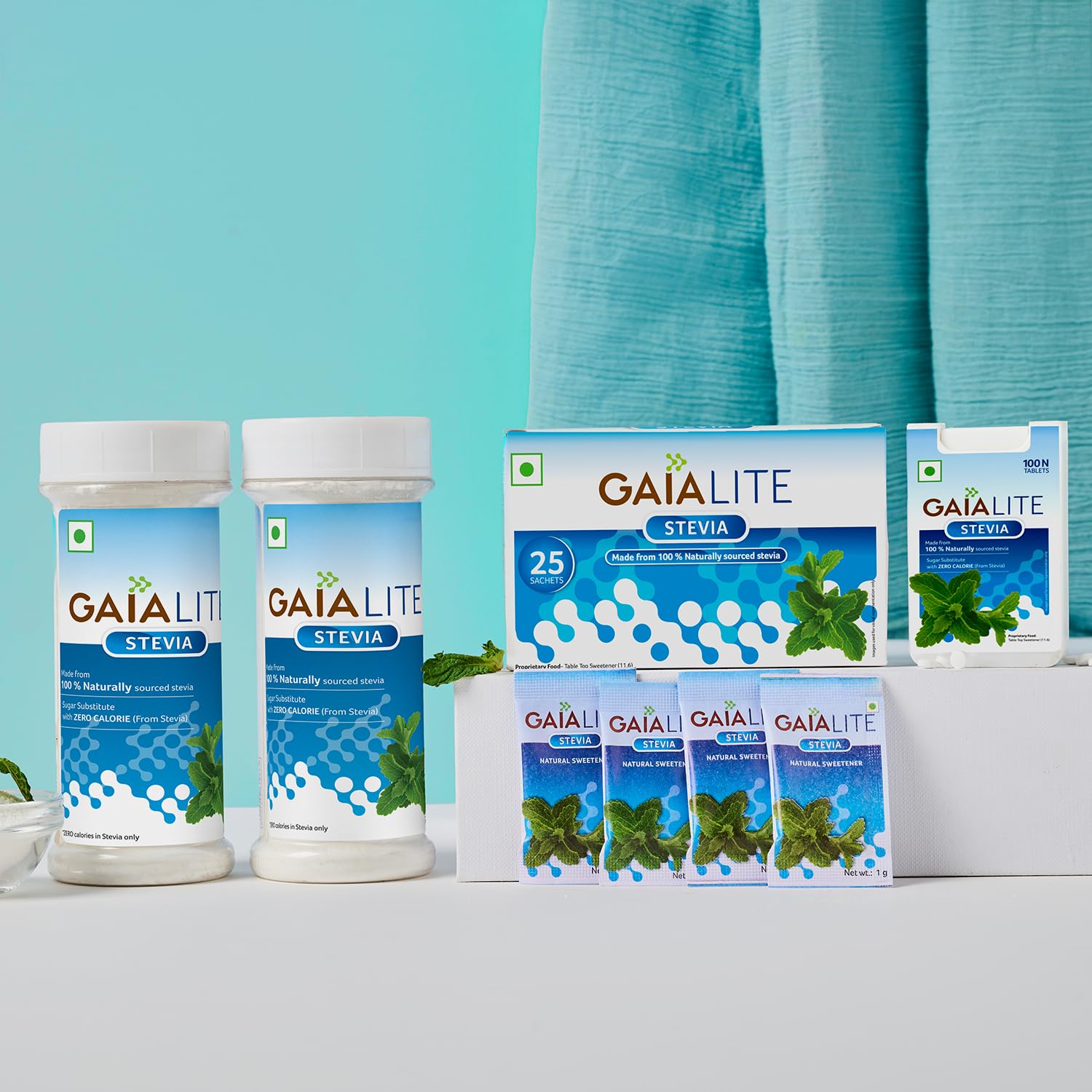 Gaia Lite Sweetner - Stevia 25 Sachets Pack (Pack of 3)- Natural Sugarfree Sweetener Perfect for Diabetes Management and Weight Loss| Quick Dissolve and a Healthy Substitute for Sugar|Made with 100% Pure and Natural Stevia Extract. With Zero Calories and Zero Sugar|Try Gaia Stevia Today!