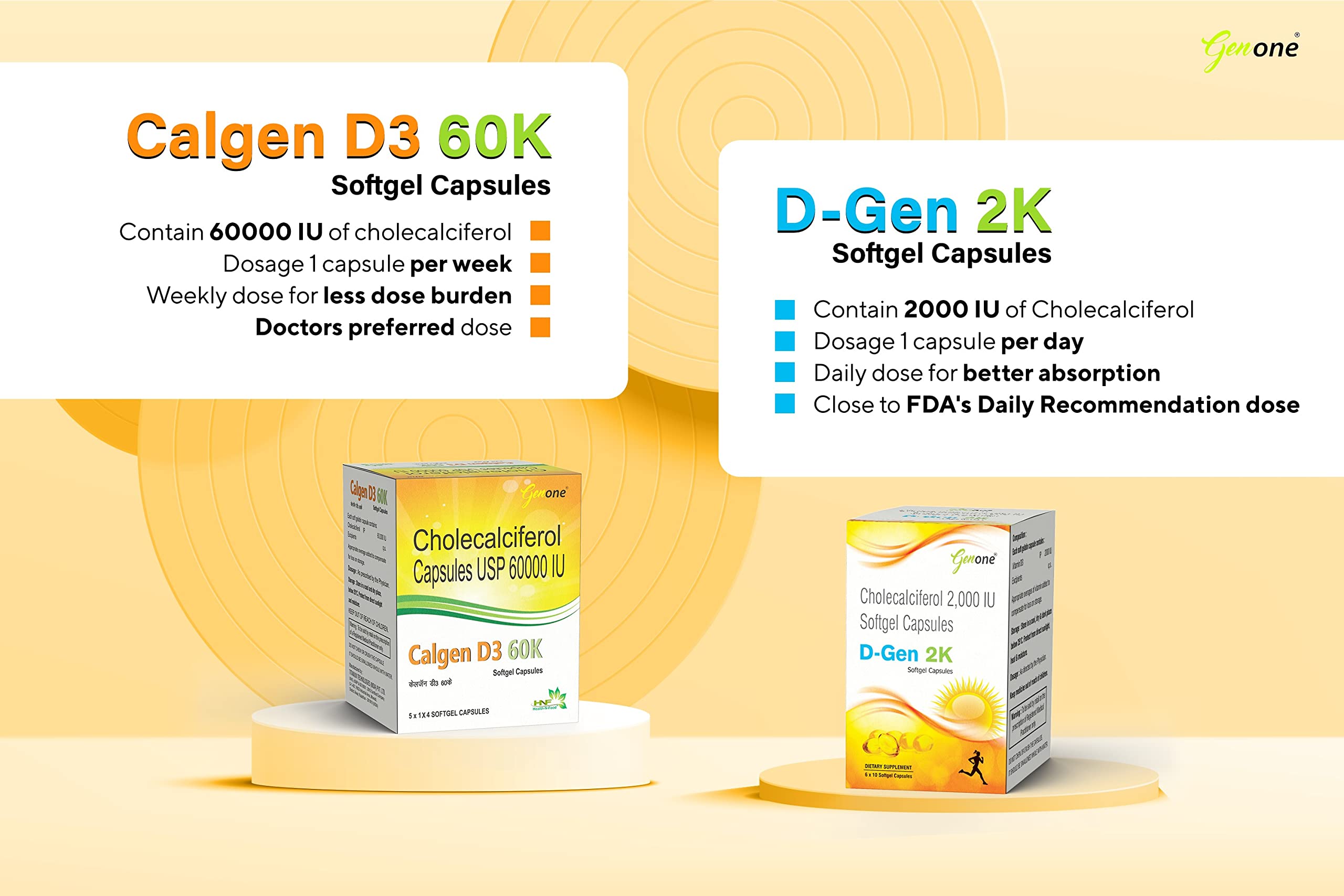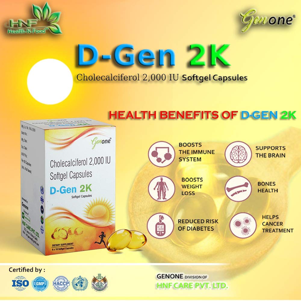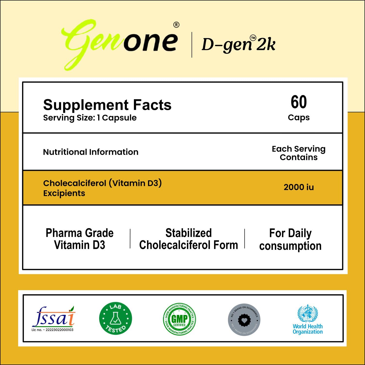 Genone DGen 2k Vitamin D3 Capsules for Strong Bones and Immunity (60 Capsules)