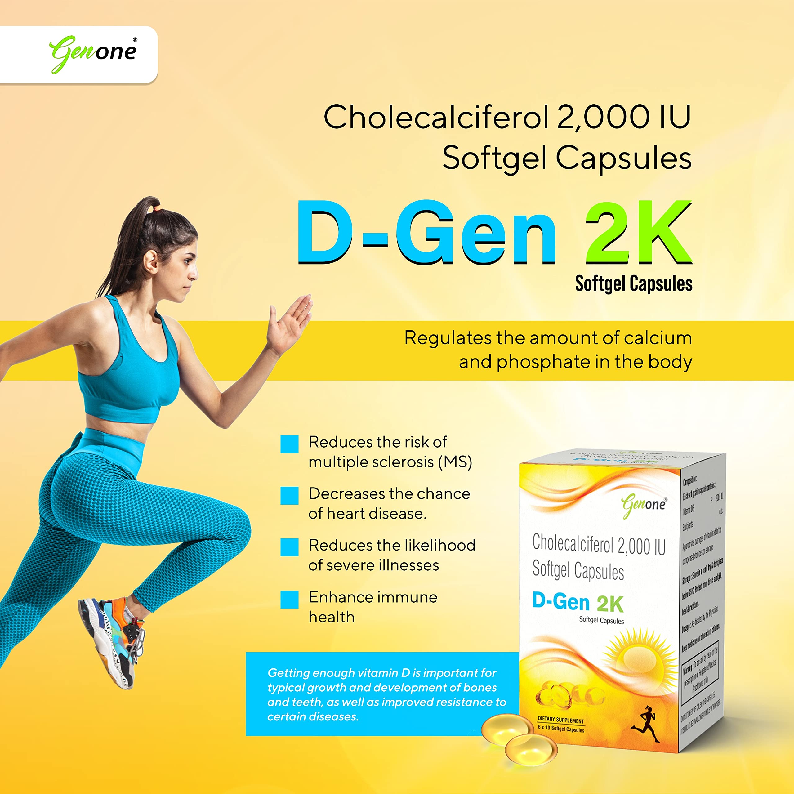 D gen 2K is commonly used to prevent or treat Vitamin D3 deficiency which can lead to weakened bones muscle weakness and other health problems.