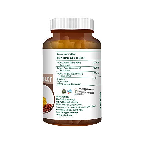 Geo-Fresh Organic Cartnat Tab. 750mg - 90 Tabs. (Natural Carotenoid Supplement For andnervous system)