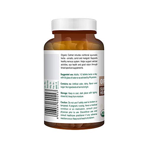 Organic Cartnat- a natural carotenoids supplement. Nutritional ayurvedic herbs- annatto carrot and marigold. Supports healthy nervous system. Helps support cellular activities eye health and good vision through broad spectrum supplements.
