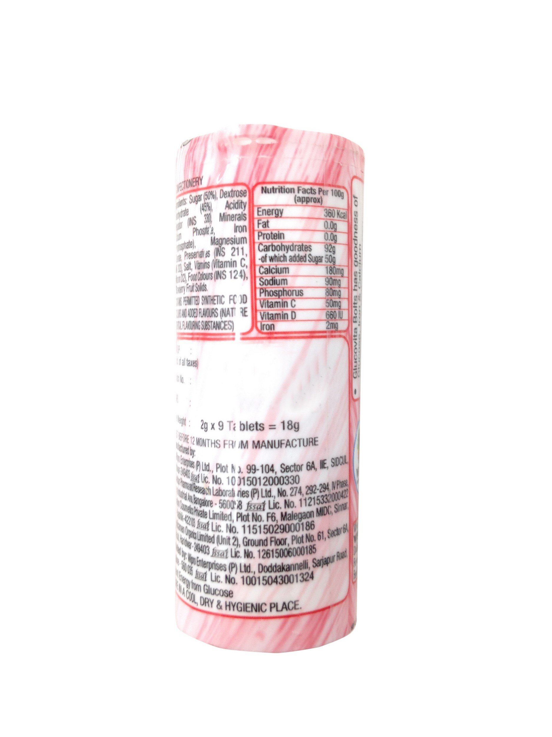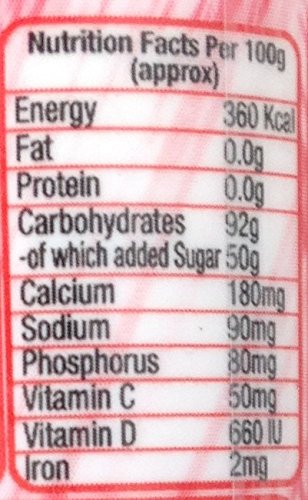 Instant energy anytime any where ingredients sugar, dextrose monohydrate, iron, minerals, vitamins, salt and strawberry fruit solids. All our products are made from quality items. We recommend that you read labels, warnings and directions of all products before use and not rely solely on the information. Care instruction keep away from the items or products which may cause damage to this product.