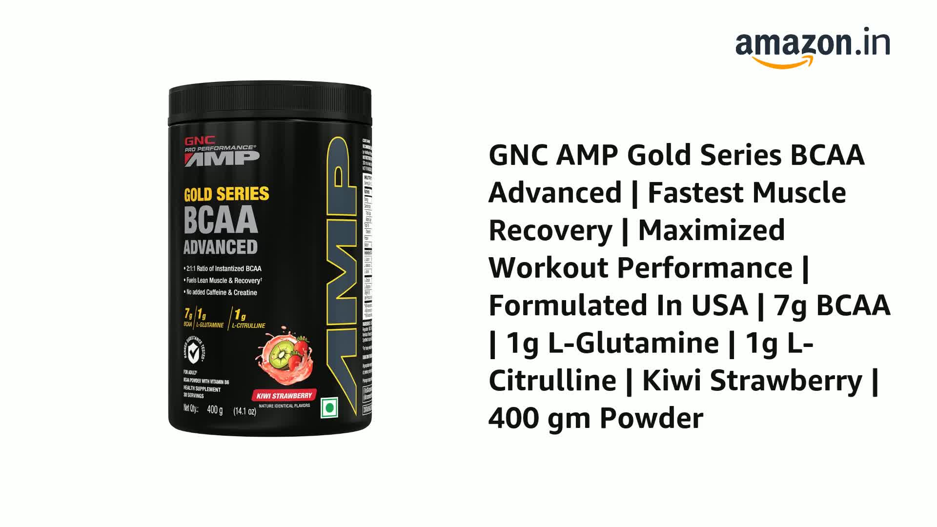 GNC AMP Gold Series BCAA Advanced | 400 gm | 30 Servings | Fastest Muscle Recovery | Maximized Workout Performance | Formulated In USA | 7g BCAA | 1g L-Glutamine | 1g L-Citrulline | Kiwi Strawberry