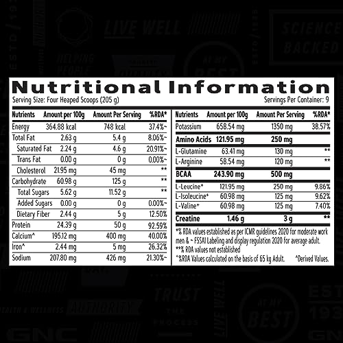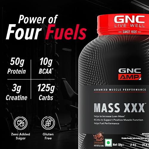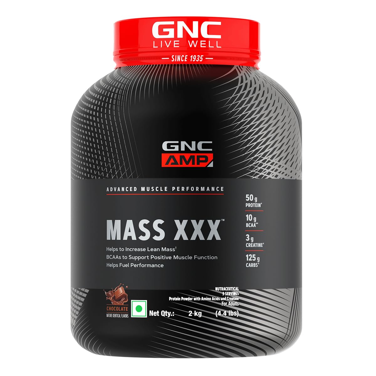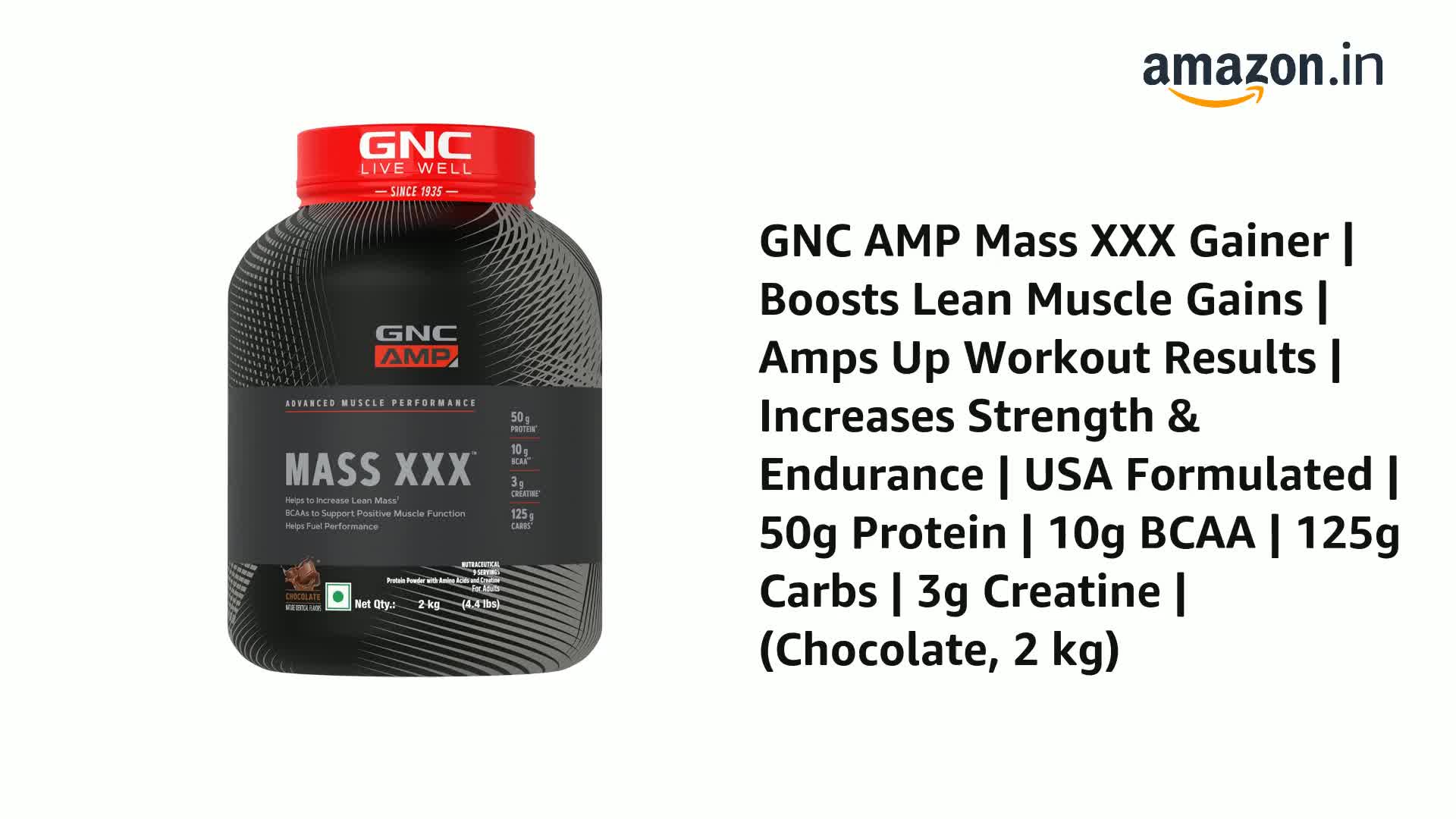 This rock solid mass gainer is engineered with the ingredients proven to help increase lean muscle mass weight strength and endurance. You can get even more out of every workout session when you make GNC AMP Mass XXX⢠a part of your exercise routine. 50g of fast medium and slow digesting proteins along with 10g of BCAA 748 calories plus carbohydrates and healthy fats for science-based nutrition. Addition of 3g of creatine may help improve training results and supports muscle protein synthesis. Micronized amino acids help fuel muscles and might support key processes crucial to the growth and repair of muscle. Gluten-free dietary supplement Product details Product Dimensions â : â 20 x 20 x 7 cm; 2 kg Date First Available â : â 14 August 2022 Manufacturer â : â Zeon Lifesciences Ltd : GNC ASIN â : â B0B9YXW9R4 Item model number â : â 90200161 Country of Origin â : â India Manufacturer â : â Zeon Lifesciences Ltd : GNC Zeon Lifesciences Ltd Packer â : â Zeon Lifesciences Ltd Item Weight â : â 2 kg Item Dimensions LxWxH â : â 20 x 20 x 7 Centimeters Net Quantity â : â 2000.0 gram Generic Name â : â GNC AMP Mass XXX Gainer | Boosts Lean Muscle Gains | Amps Up Workout Results | Increases Strength & Endurance | USA Formulated | 50g Protein | 10g BCAA | 125g Carbs | 3g Creatine | Chocolate | 2 Kg Best Sellers Rank: #17203 in Health & Personal Care (See Top 100 in Health & Personal Care) #97 in Mass & Weight Gainers Customer Reviews: /* * Fix for UDP-1061. Average customer reviews has a small extra line on hover * https://omni-grok.amazon.com/xref/src/appgroup/websiteTemplates/retail/SoftlinesDetailPageAssets/udp-intl-lock/src/legacy.css?indexName=WebsiteTemplates#40 */ .noUnderline a:hover { text-decoration: none; } .cm-cr-review-stars-spacing-big { margin-top: 1px; } 3.9 3.9 out of 5 stars 446 ratings var dpAcrHasRegisteredArcLinkClickAction; P.when('A' 'ready').execute(function(A) { if (dpAcrHasRegisteredArcLinkClickAction !== true) { dpAcrHasRegisteredArcLinkClickAction = true; A.declarative( 'acrLink-click-metrics' 'click' { allowLinkDefault": true } function (event) { if (window.ue) { ue.count("acrLinkClickCount" (ue.count("acrLinkClickCount") || 0) + 1); } } ); } }); P.when('A' 'cf').execute(function(A) { A.declarative('acrStarsLink-click-metrics' 'click' { "allowLinkDefault" : true } function(event){ if(window.ue) { ue.count("acrStarsLinkWithPopoverClickCount" (ue.count("acrStarsLinkWithPopoverClickCount") || 0) + 1); } }); });