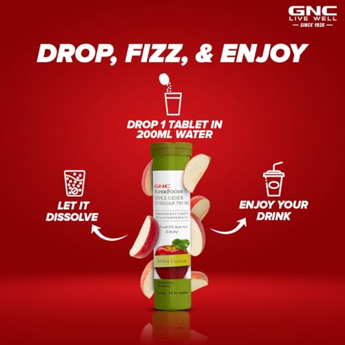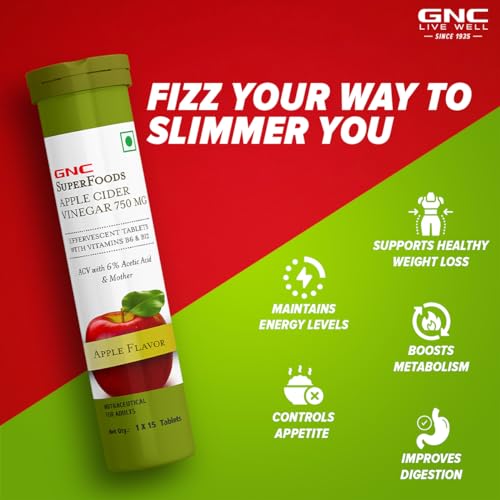 • BALANCED WEIGHT MANAGEMENT: GNC's Apple Cider Vinegar Effervescent Tablets are specially crafted to support healthy weight loss by boosting metabolism controlling appetite and aiding digestion. These Effervescent Tablets contain 6% acetic acid and the 'mo