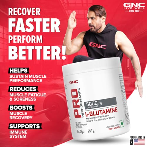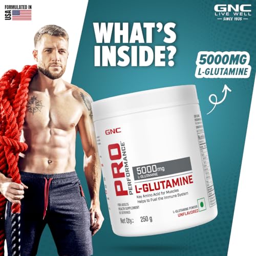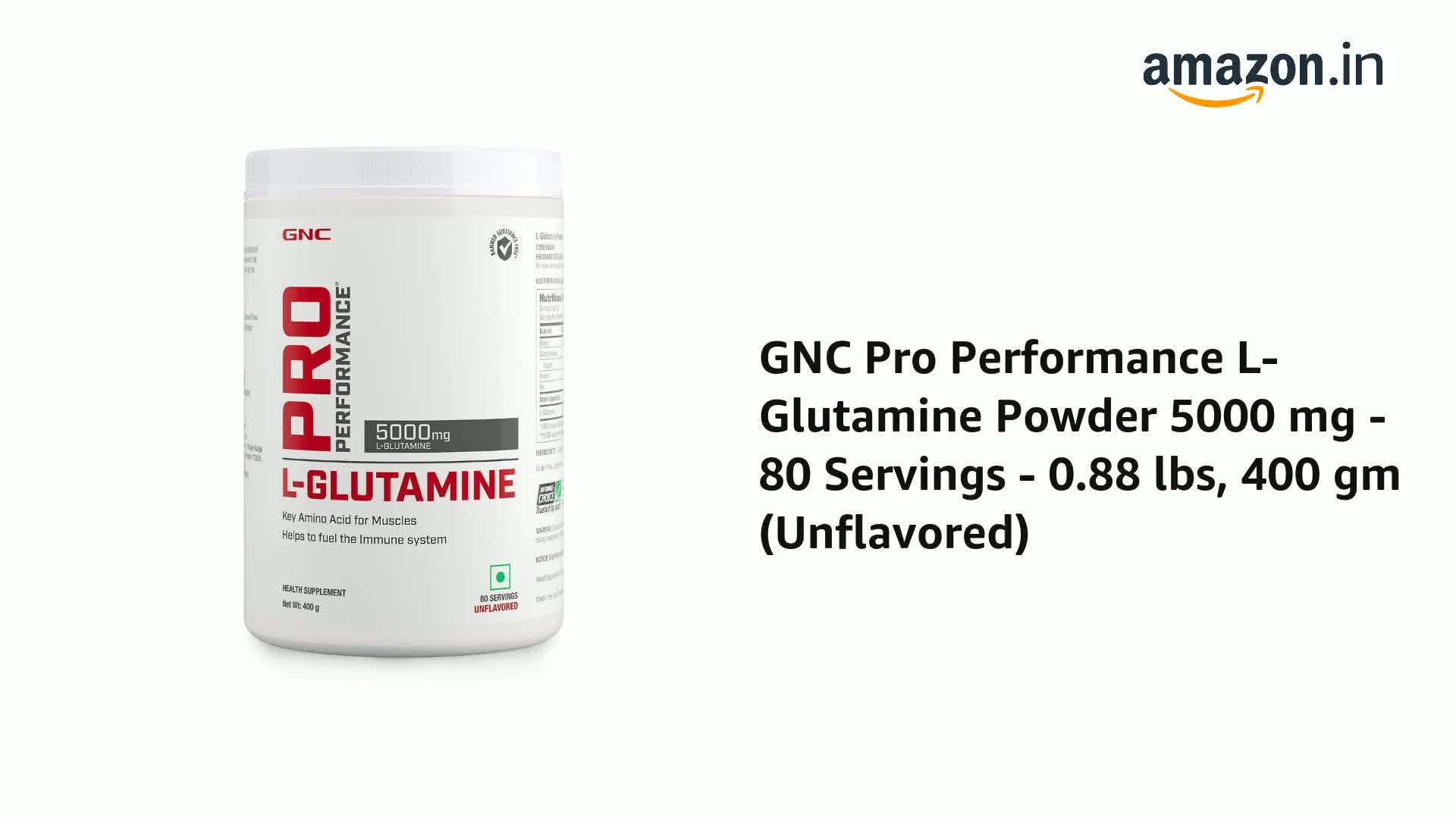 GNC Pro Performance L-Glutamine 5000 mg | 400 gm | 80 Servings | Key Amino Acid For Faster Recovery | Boosts Immunity | Supports Intestinal Function | Lactose Free | Zero Gluten | Unflavoured