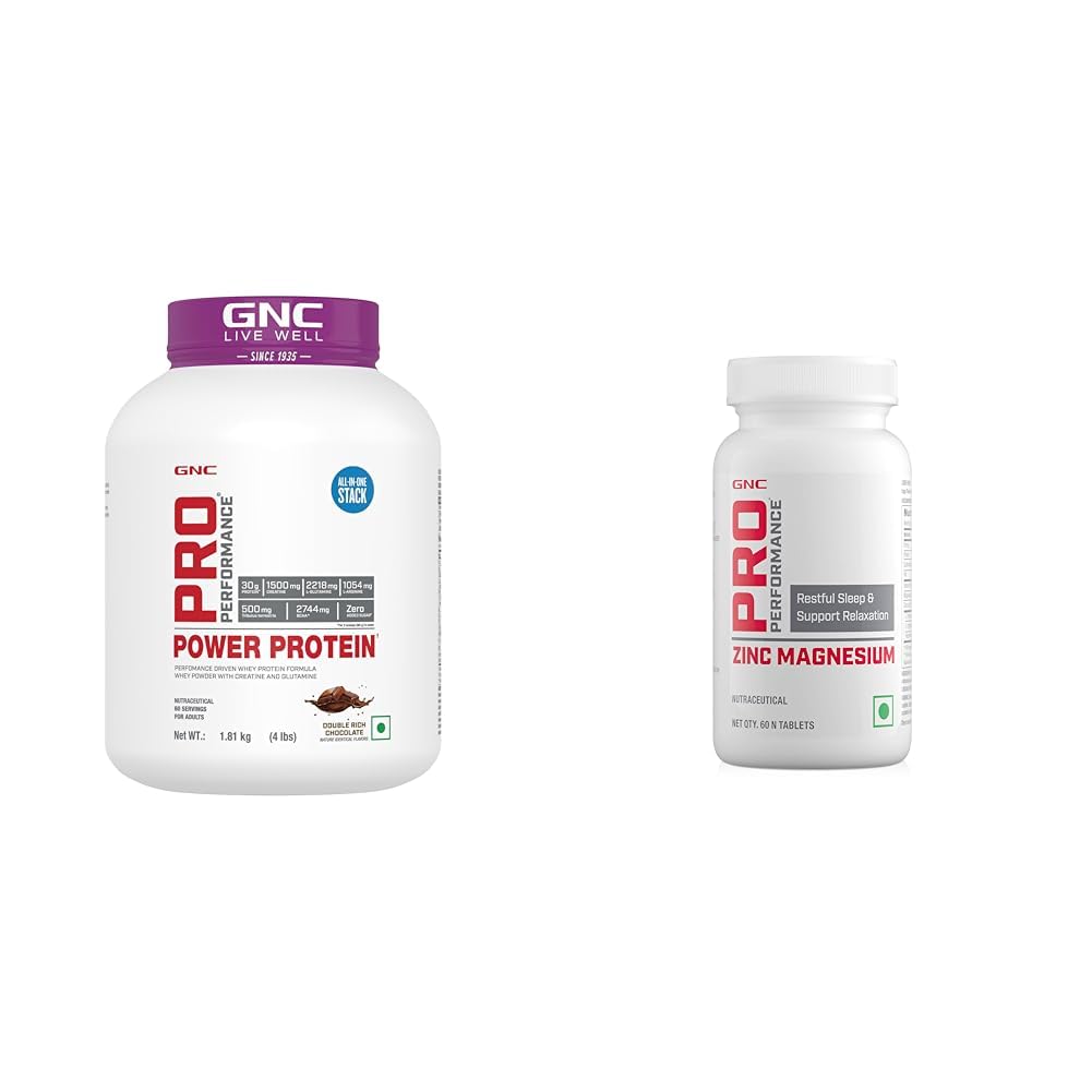GNC Pro Performance Power Whey Protein| Double Rich Chocolate | 4 Lbs & Zinc Magnesium Amino (ZMA) Complex- 60 Tablets (Pack Of 1) COMBO,1.81 Kilogram, 25 Scoops