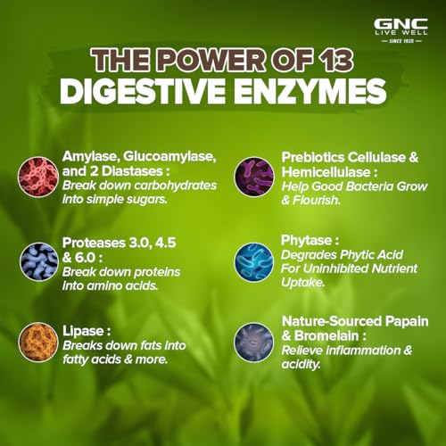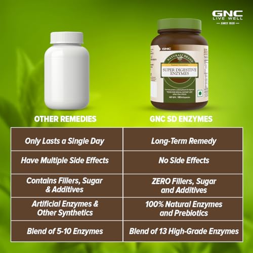 SUPPORTS REGULAR BOWEL MOTIONS: GNC Super Digestive Enzymes formula converts the difficult-to-digest food ingredients into much simpler forms ensuring well-timed and proper bowel movements with zero instances of bloating gassiness or other stomach-upset s
