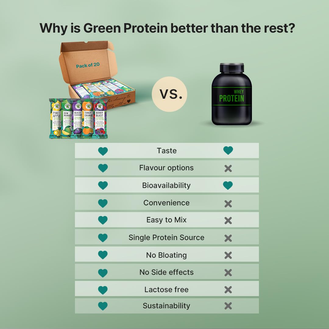 HomeHealth & PersonalDiet & NutritionHealth SupplementsGREEN PROTEIN Pea Protein Isolate Powder Vegan Plant Protein Dairy Free With No Added Sugar Pineapple Black Currant Berry Blast Tangy Orange and Raw Mango Flavor 5 Flavors x 4 Sachets Pack Of 20 23g each