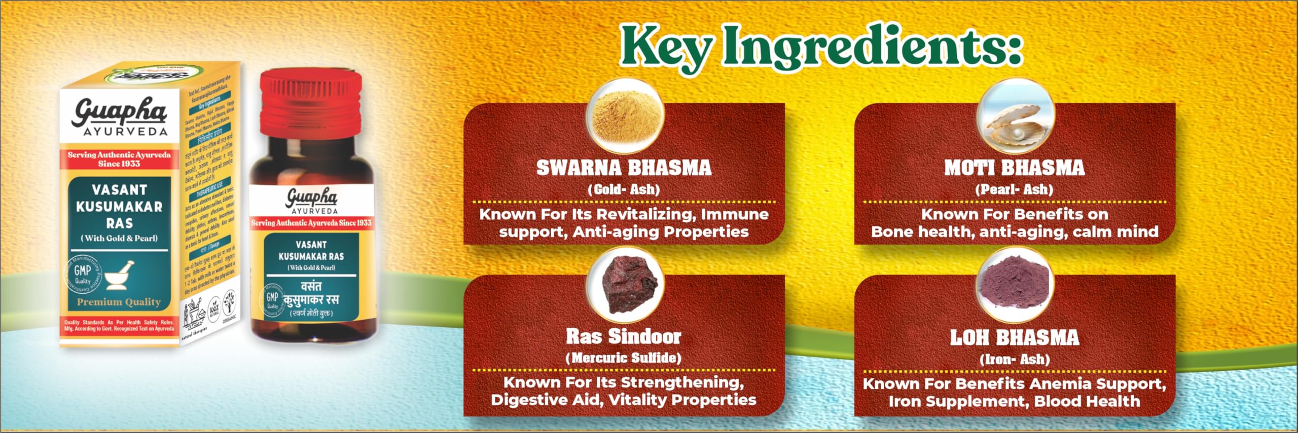 Guapha Ayurveda Vasant Kusumakar Ras (With Gold & Pearl) | Maintains Blood Sugar Level