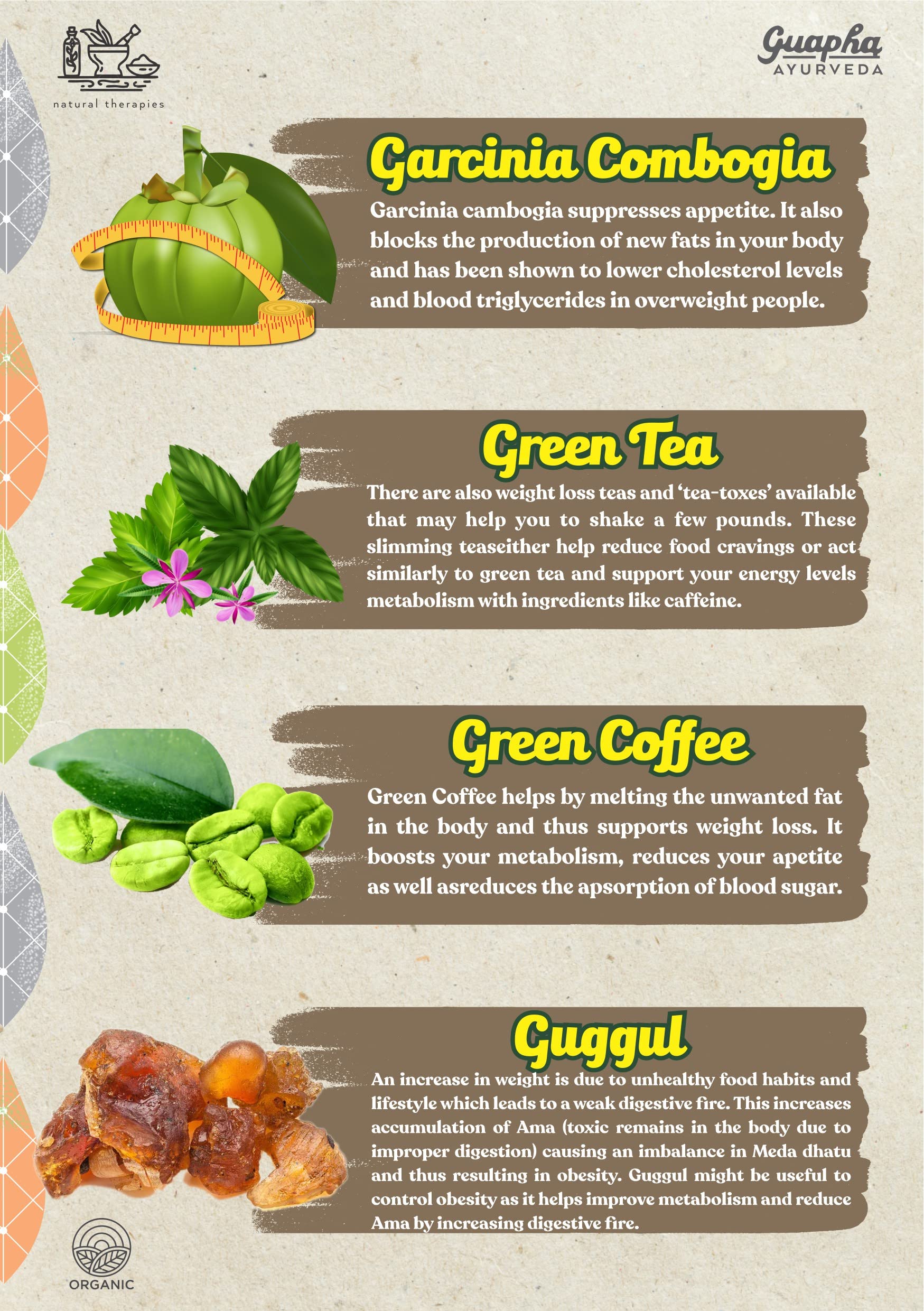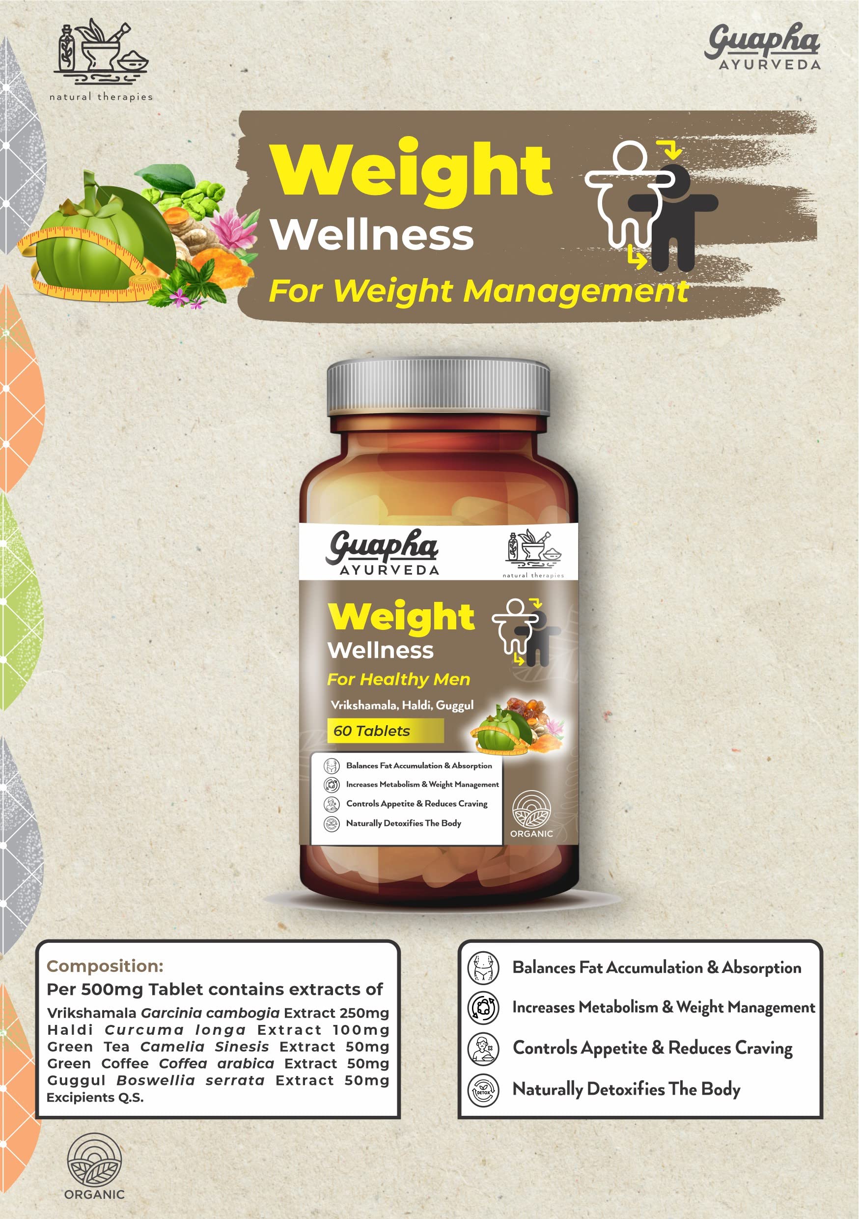 Guapha Ayurveda Weight Wellness | For Weight Management | With Herbal Extracts of Green Tea Green Coffee Curcumin 60 Tablets