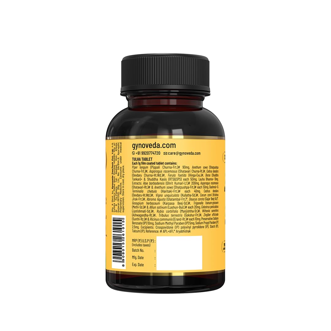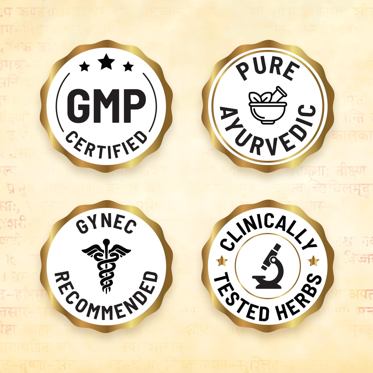 INGREDIENTS: Made with 20+ Ayurvedic herbs tested for Safety Purity Potency. Shatavari helps regulate natural periods. Ashwagandha ensures healthy period flow. Dashmool balances hormones. Aloe Vera& Shatapushpa support egg growth to improve chances of nat