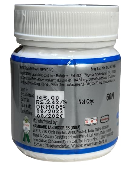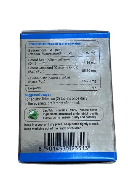 Key Ingredients: Hamdard Lipotab contains a unique Unani composition of carefully selected herbal ingredients including Safoof Chobzard Safoof Seer and Badranjboya which helps manage lipid levels.