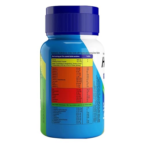 Composition: Taurine Soya Protein Hydrolysate Polyvinylpyrrolidone (INS 1201 & 1202) Microcrystalline Cellulose [INS (460 (i))] Ascorbic Acid Ginseng Extract Ferrous Fumarate Croscarmellose Sodium (INS 468) Sodium Starch Glycolate Stearic Acid (INS 570) H