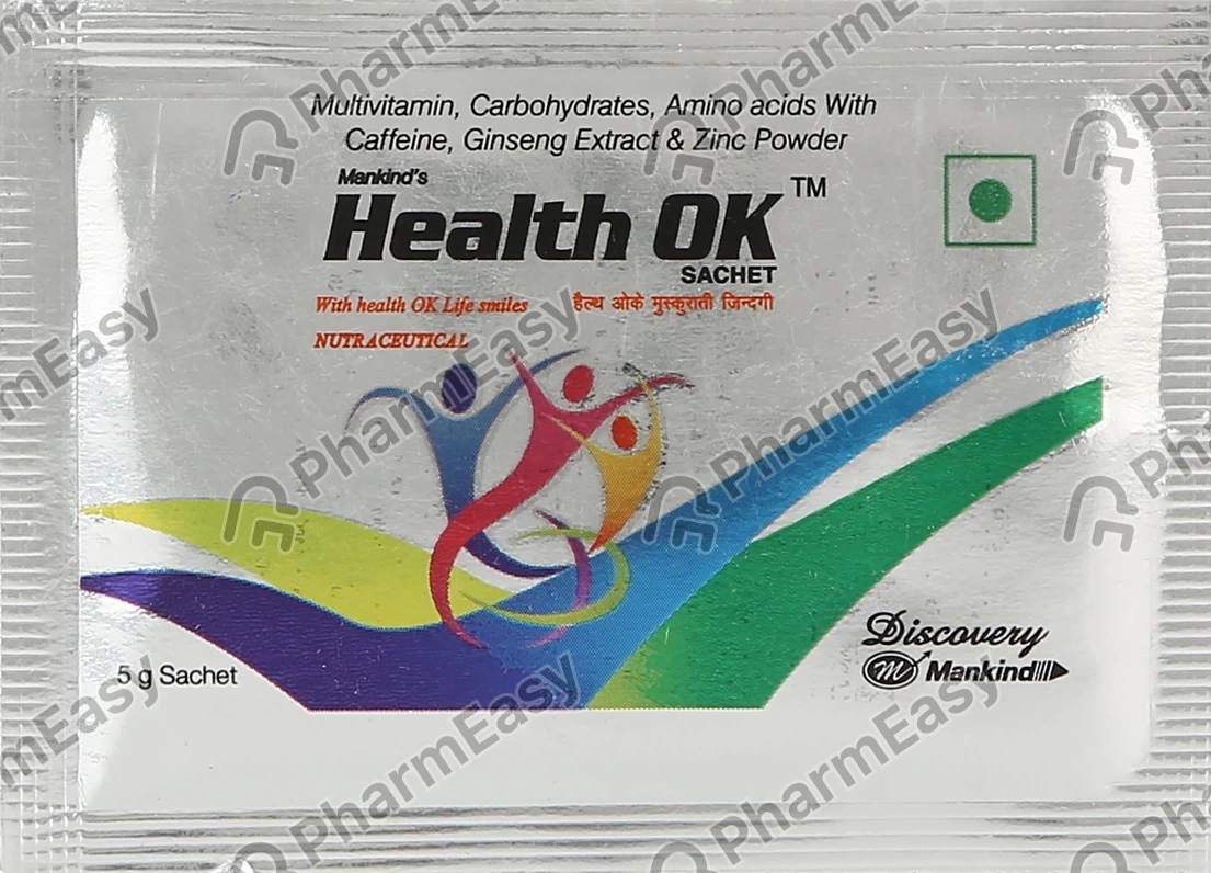 Health OK Powder is a nutritional supplement formulated with essential vitamins, minerals, and amino acids to help reduce weakness and tiredness and increase energy levels. It contains nutrients to improve immune function and maintain optimum energy and metabolism.