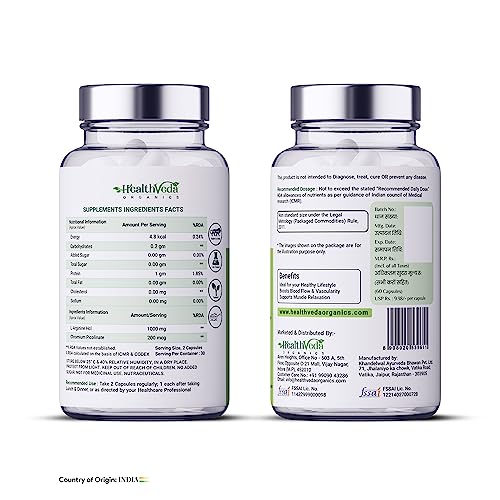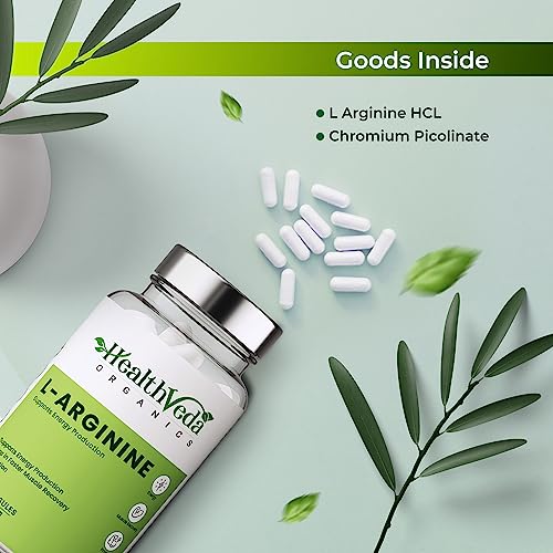 Health Veda Organics L Arginine 1000 mg with Chromium Picolinate | 60 Veg Caps. | For Both Men & Women