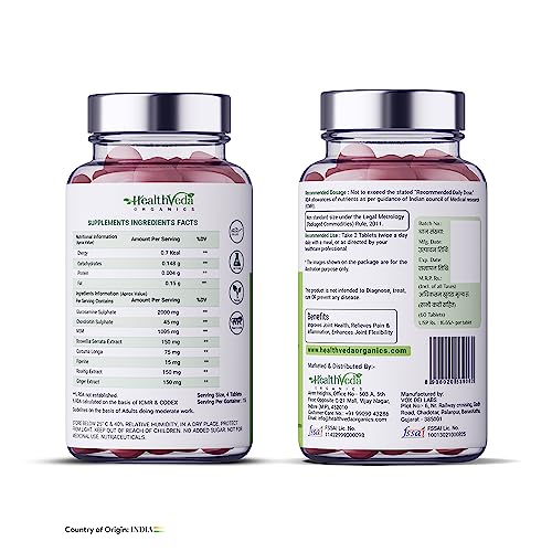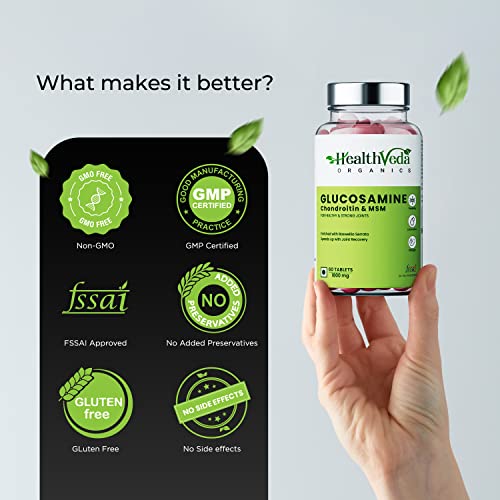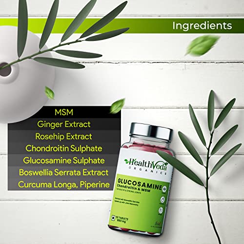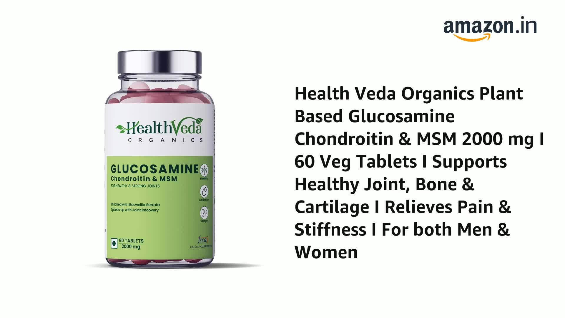 Health Veda Organics Plant Based Glucosamine Chondroitin & MSM 2000 mg I 60 Veg Tabs. I Supports Healthy Joint Bone & Cartilage I & Stiffness I For both Men & Women