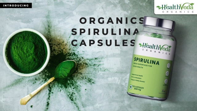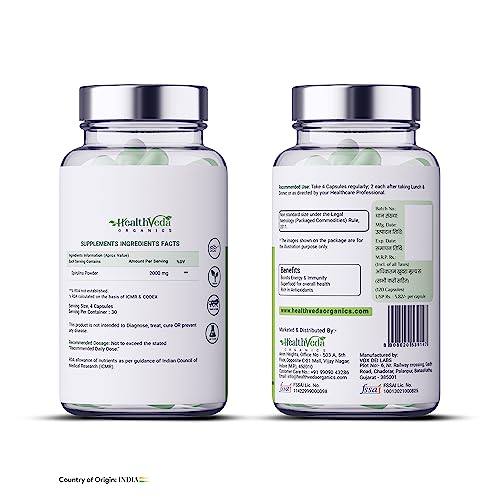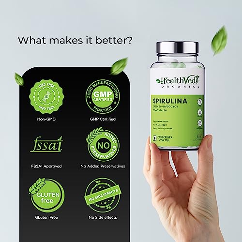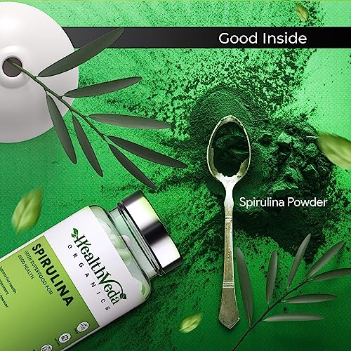 Health Veda Organics Plant Based Spirulina 2000 mg | 120 Veg Caps. I For both Men & Women