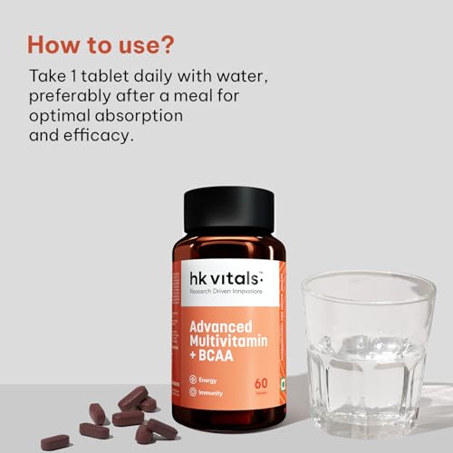 Vitamins & minerals influence a number of the bodyâs physiological processes crucial for exercise or sports performance. HealthKart HK Vitals Advanced Multivitamin is an advanced supplement enriched with 36 ingredients specially formulated for fitness enthusiasts bodybuilders and gym-goers. These multivitamin tablets provide essential vitamins & minerals that support an active lifestyle by improving cellular energy metabolism. BCAA of Amino Acid Blend along with the goodness of Sports Blend may help improve muscle mass & strength and enhance physical performances. In addition the Antioxidant Blend of this multivitamin supplement for men and women provides antioxidant support that boosts your immunity and helps in faster recovery after exercise. Thus HK Vitals Advanced Multivitamin (from the house of HealthKart) provides nutrients that may improve your physical performance and maintain your fitness. Consume one multivitamin tablet daily or as suggested by your healthcare practitioner.