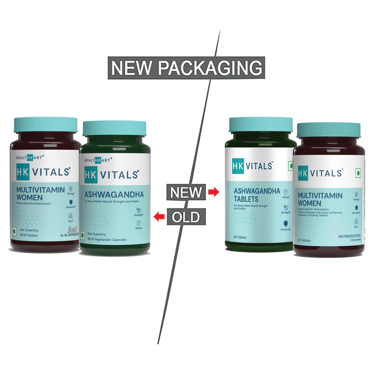 HealthKart HK Vitals Ashwagandha Anxiety & Stress Relief (60 Capsules) with Multivitamin Women with Zinc Vitamin C Multiminerals & Ginseng Extract (60 Tablets) | (Combo Pack)
