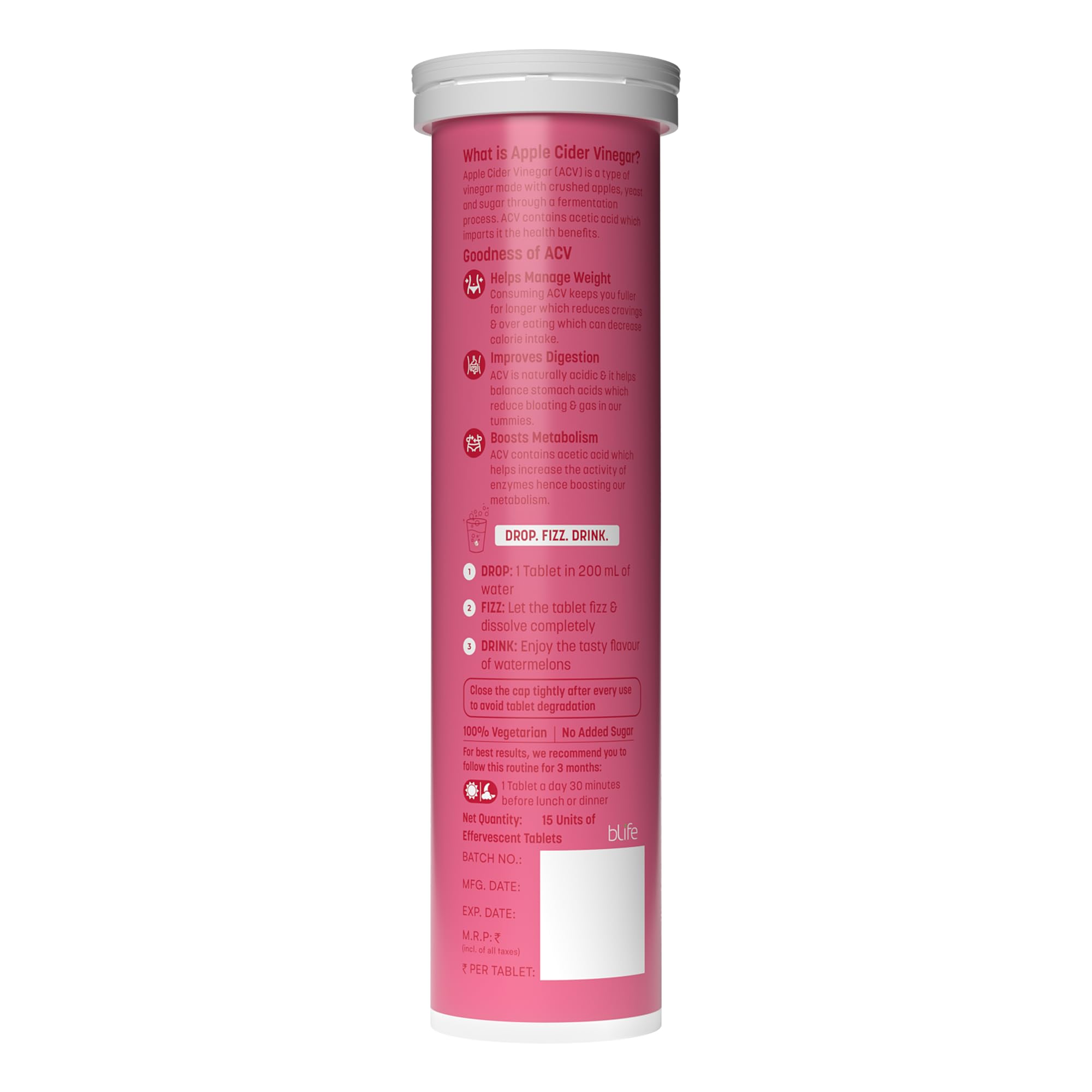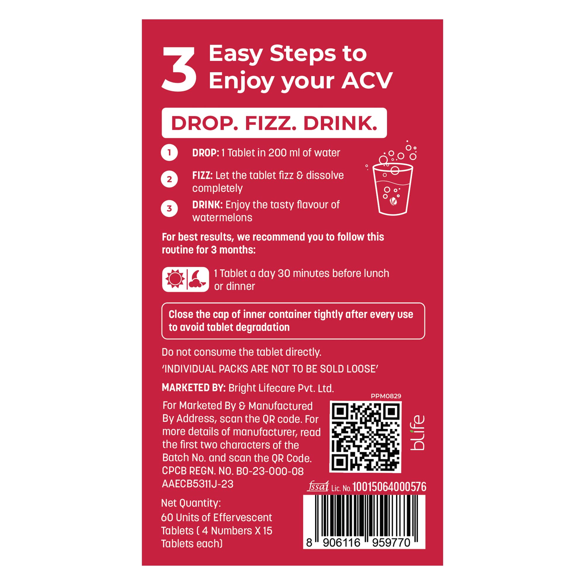 HealthKart HK VITALS Apple Cider Vinegar 750mg (Watermelon 15 Effervescent Tablets) Pack of 4| For Weight Management & Gut Health Supports Digestion