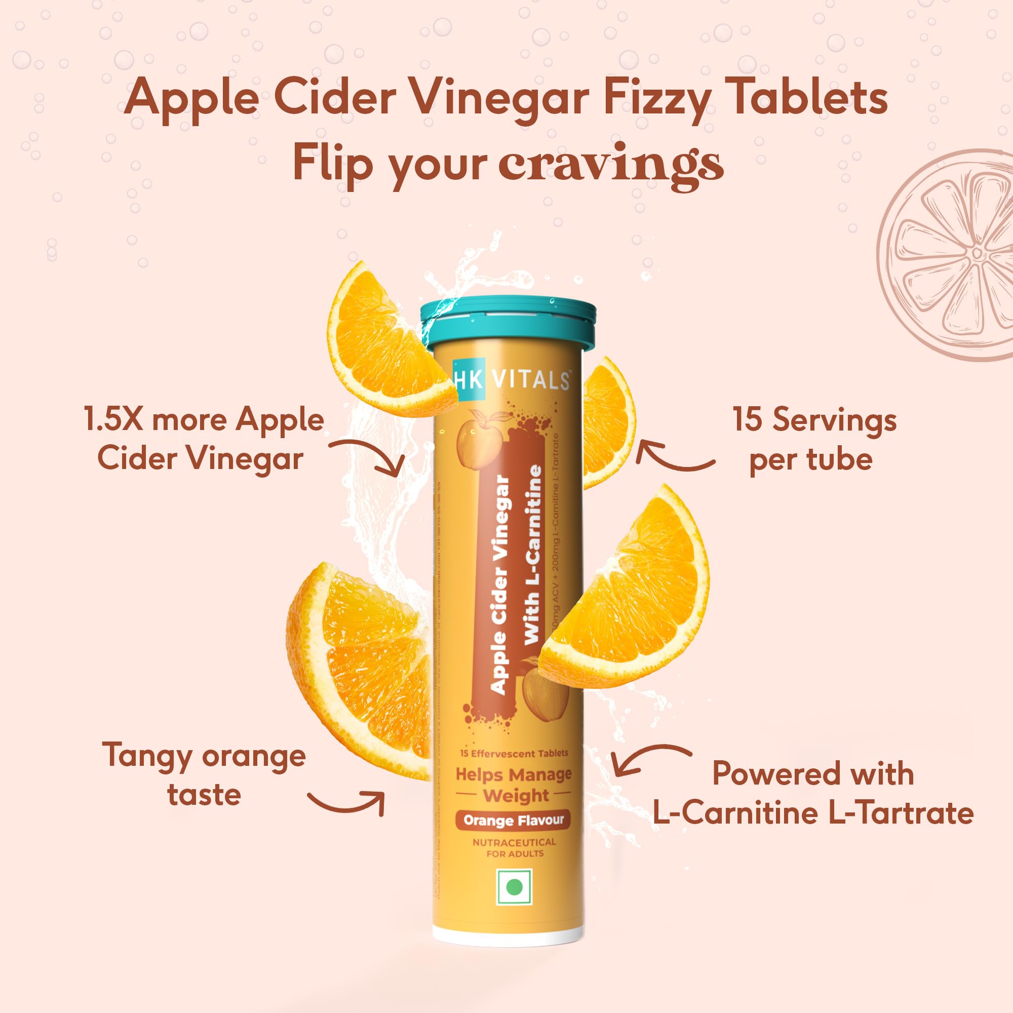 HealthKart HK Vitals Apple Cider Vinegar + L Carnitine (Orange 15 Effervescent Tablets) | for Weight Management