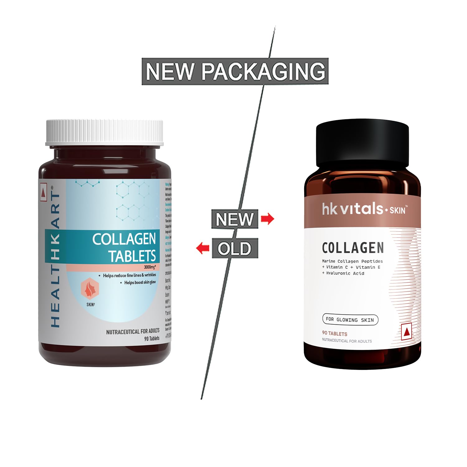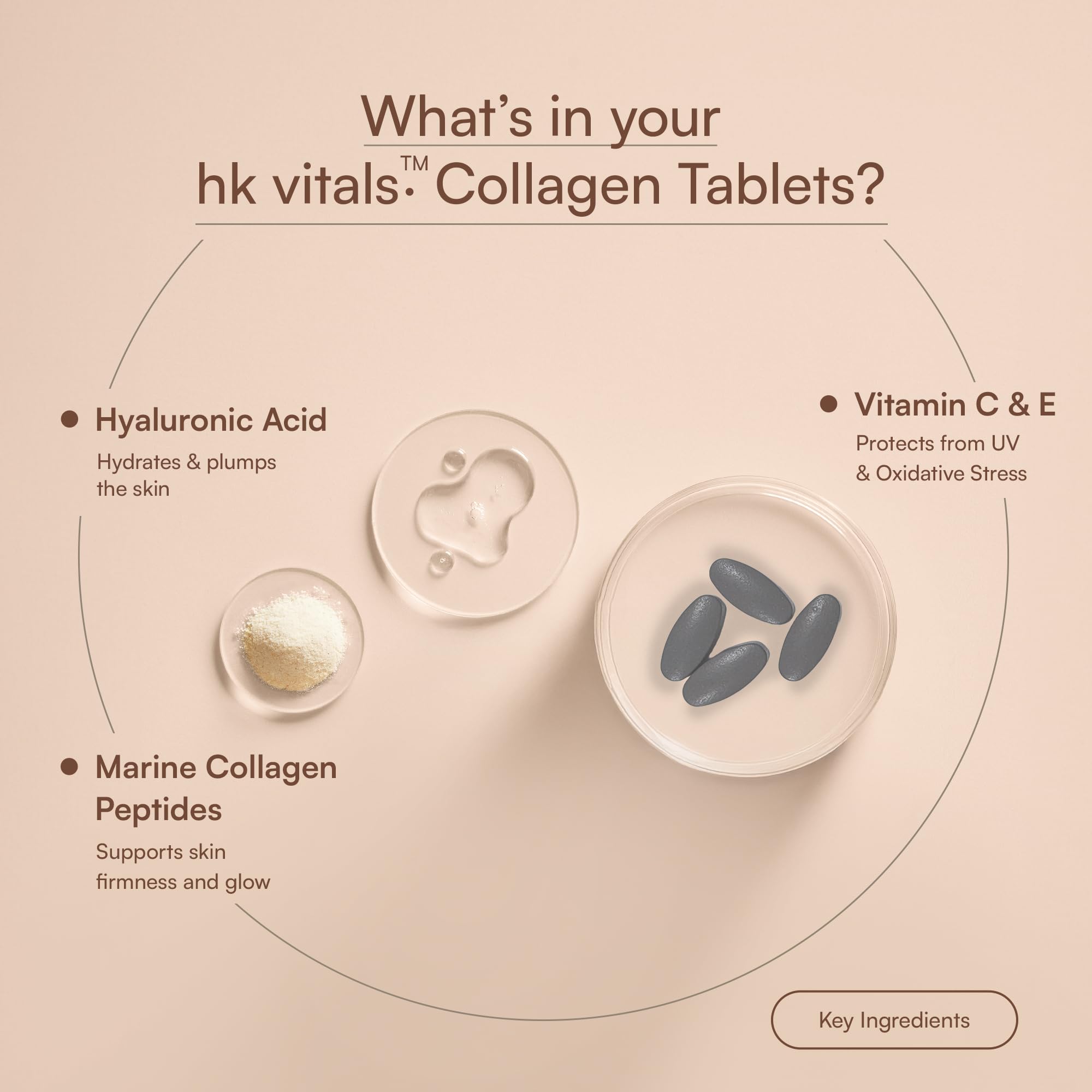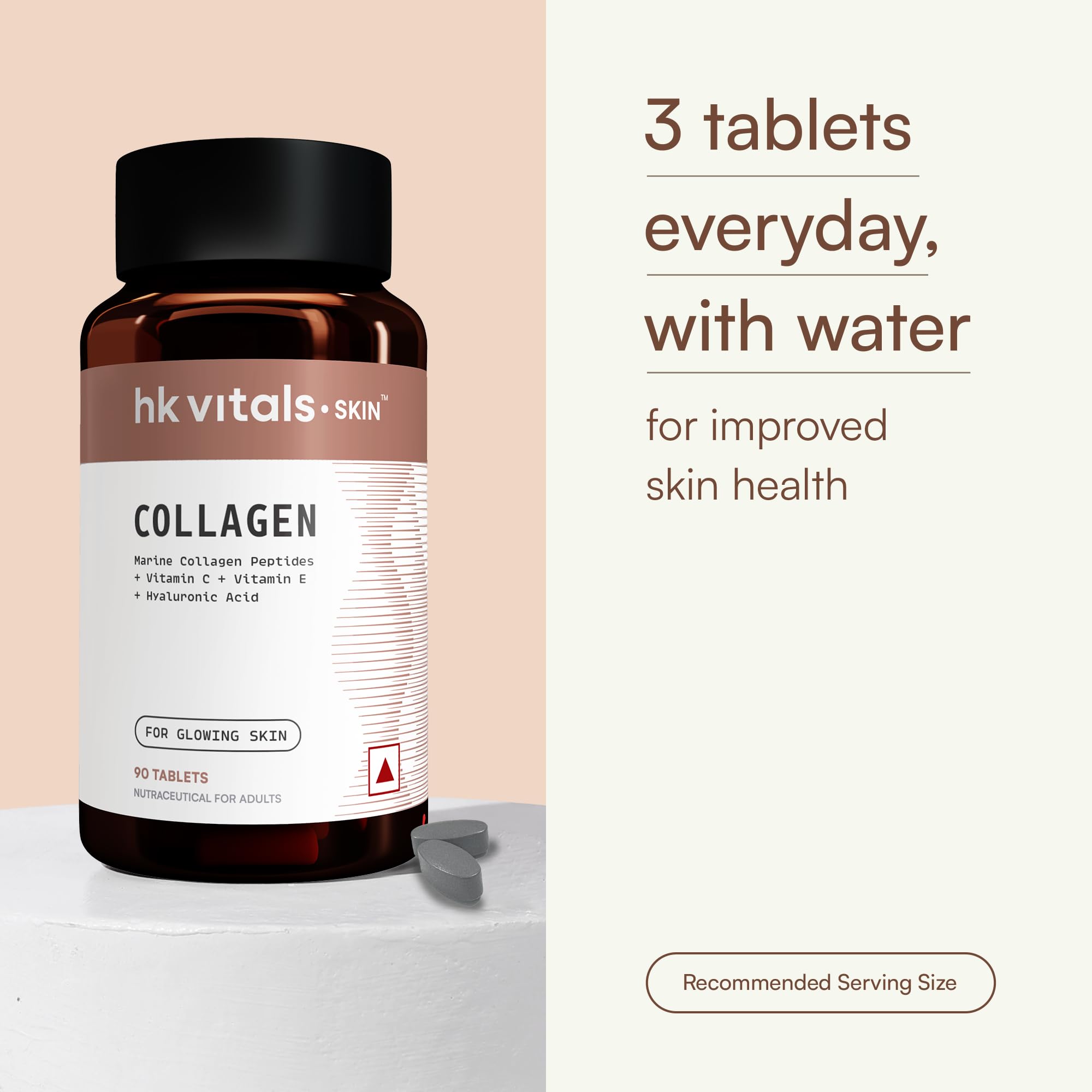 HealthKart hk vitals Collagen Tablets (90 Tablets) | 3000mg | Marine Collagen Peptides | Vitamin C E Biotin with Hydrolyzed Peptides