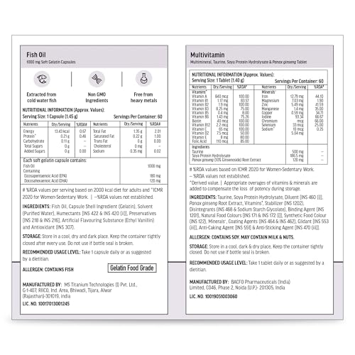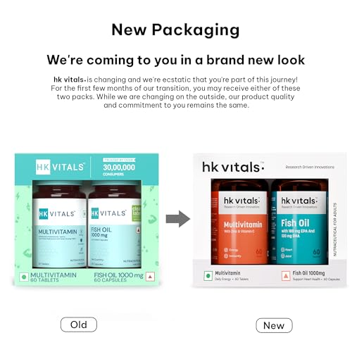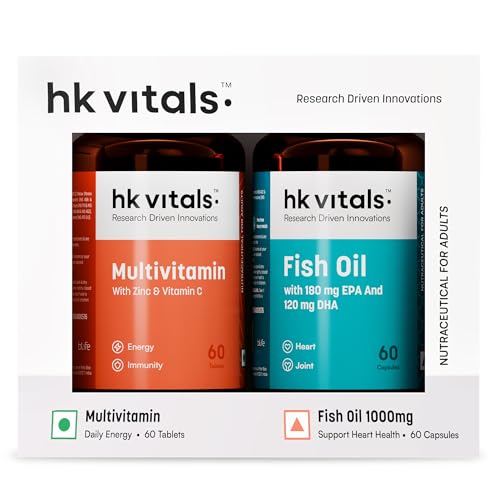 HealthKart hk vitals Fish Oil and Multivitamin (60 Tablets Each) Combo Pack | 1000mg Omega 3 with 180mg EPA & 120mg DHA | Enhances Energy, Immunity & Joints Health