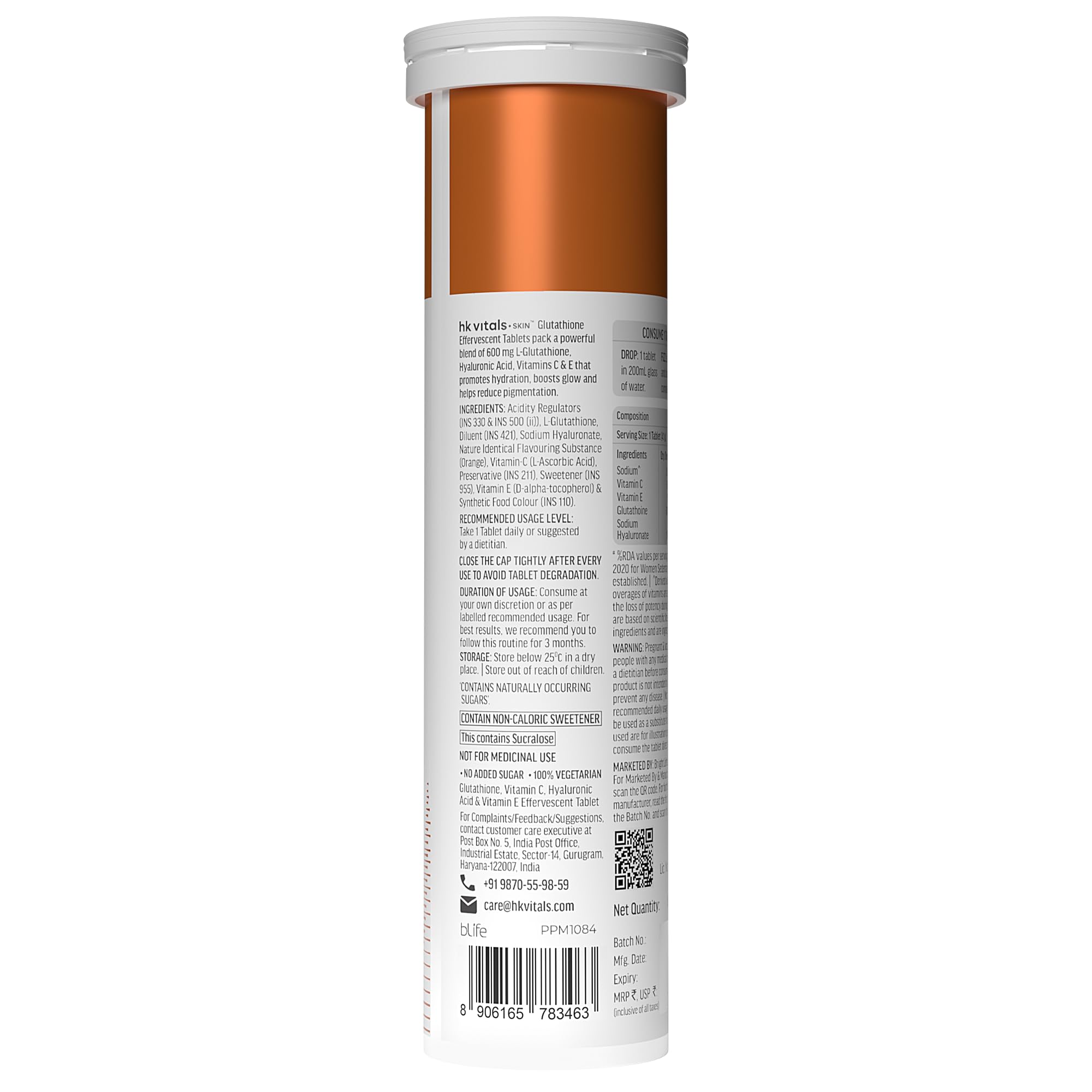 RECOMMENDED DOSAGE: One hk vitals Glutathione Effervescent tablet daily will help improve your skin glow & reduce pigmentation