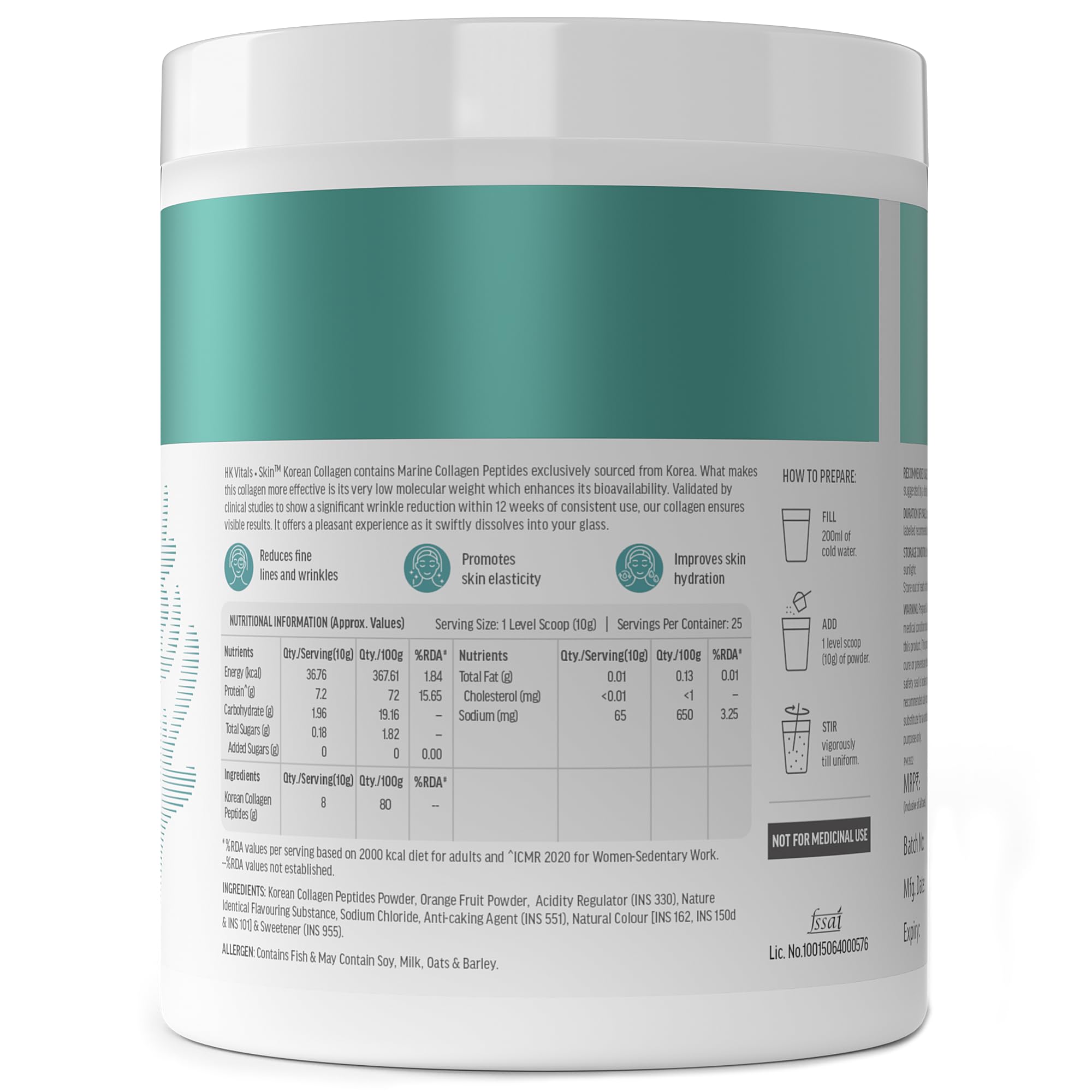 HealthKart Hk Vitals Korean Marine Collagen Supplement (Orange250 G)|Supplement For Women & Men|Promotes Healthy SkinHair & NailsPowder1 Count25 Servings