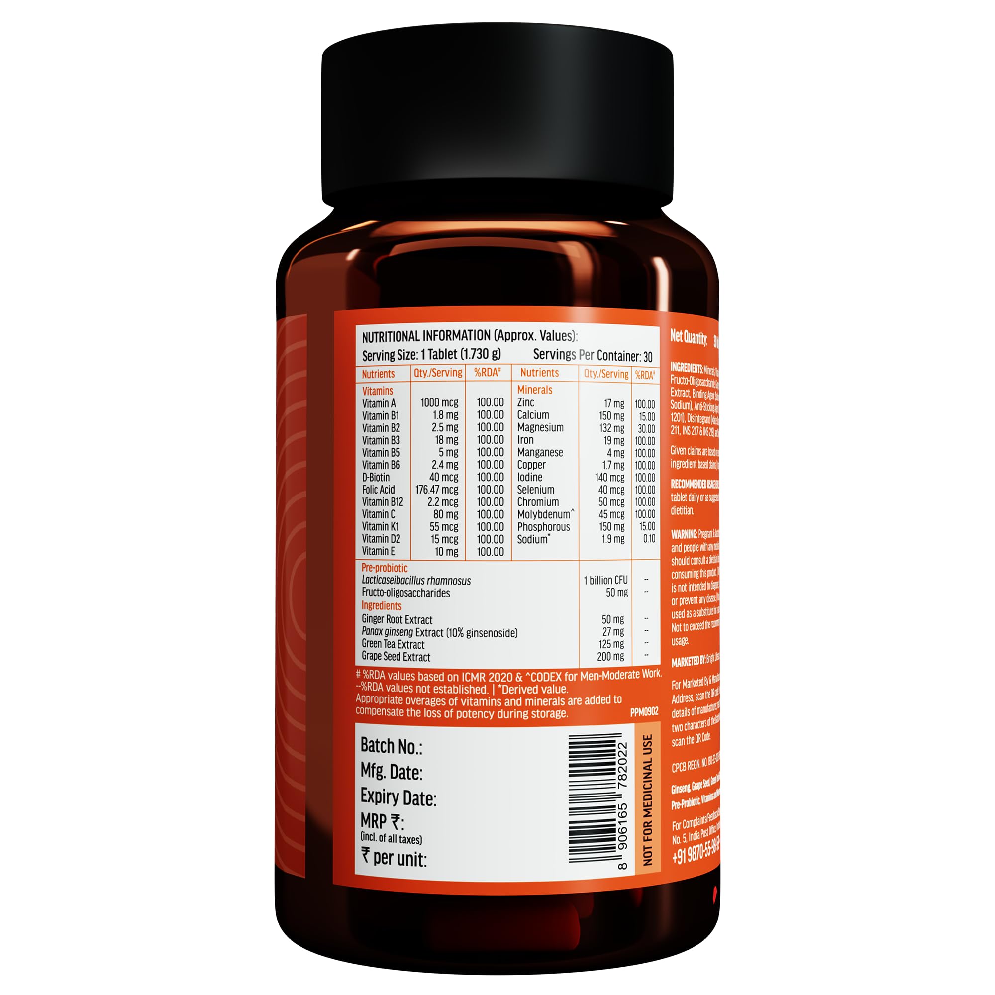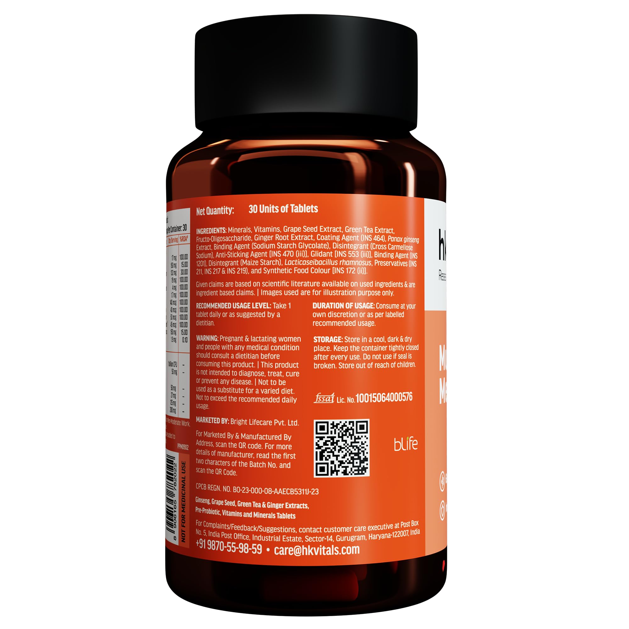 HealthKart hk vitals Multivitamin Plus Men 30 Tablets | Daily Multivitamin for Men For Energy Stamina Immunity Gut Heart Bone & Muscle Health