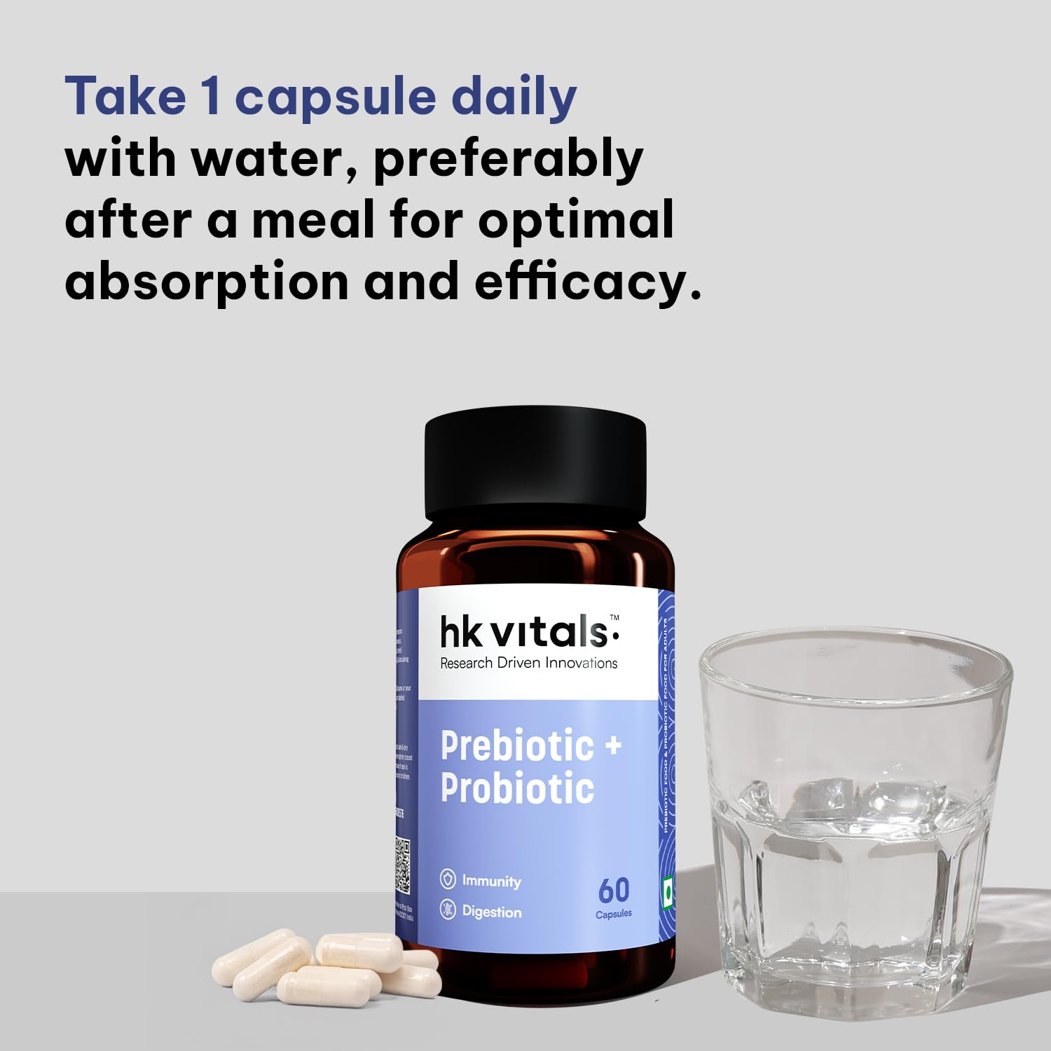 HealthKart hk vitals Pre & Probiotics (60 Capsules) | With CFU & 100mg Prebiotics | Improves Digestion & Immunity