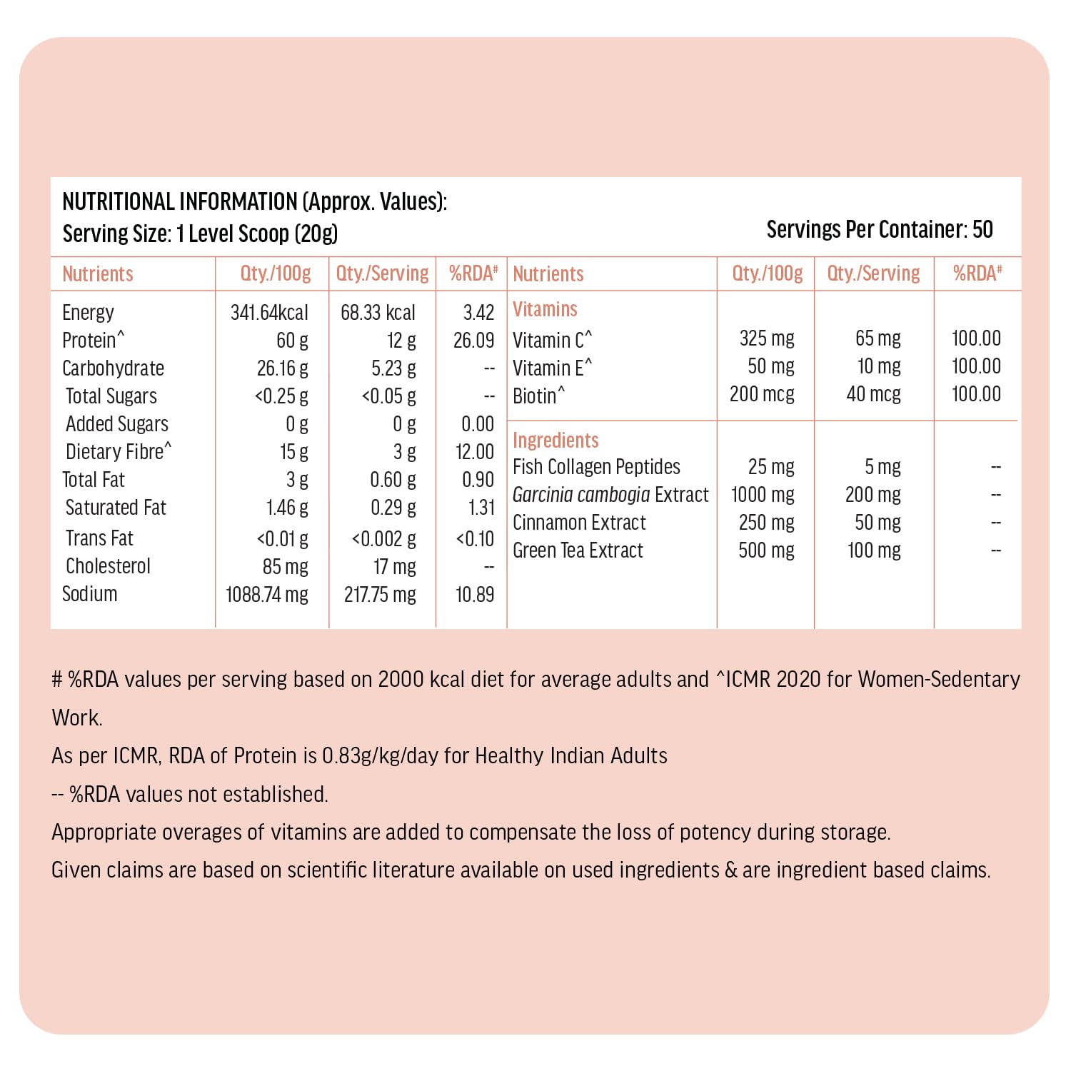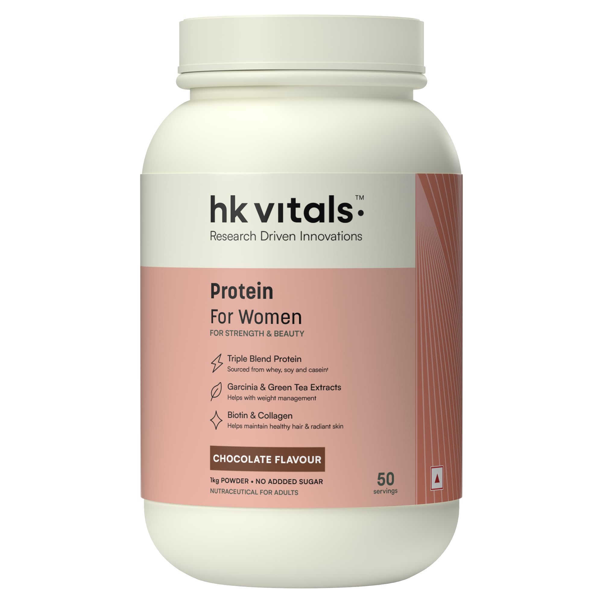 HealthKart hk vitals Protein for Women with Triple Blend Protein (Chocolate 1kg / 2.2lbs) | Collagen Vitamin C E & Biotin | For Strength & Beauty