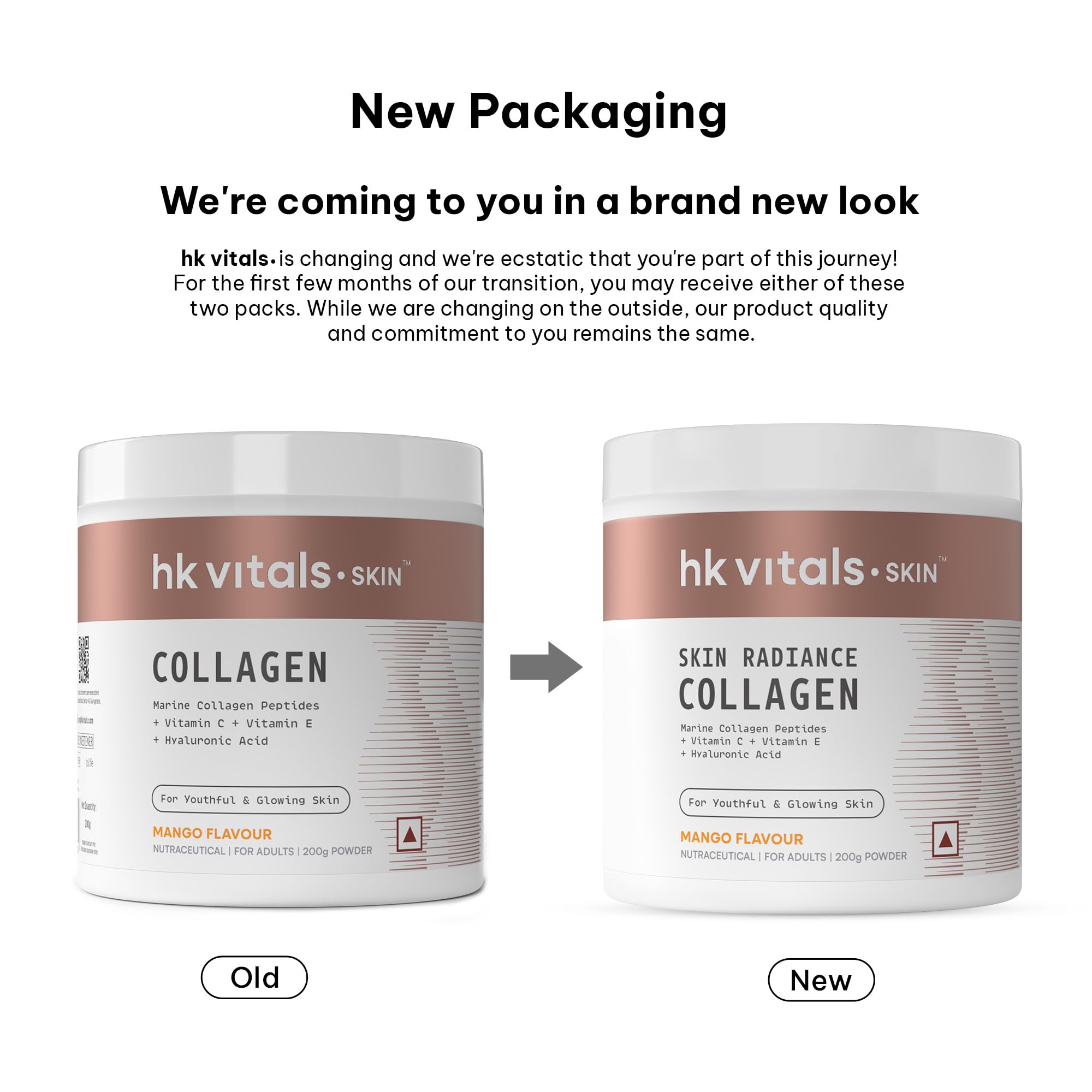 HealthKart hk vitals Skin Radiance Marine Collagen Supplement(Mango 200g) |Vitamin C E Sodium Hyaluronate | For Healthy Skin Hair & Nails Powder