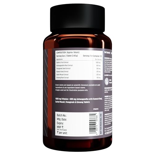 PACKED WITH NATURAL HERBS: HealthKart HK Vitals Testo Bold is enriched with 1000 mg Tribulus 600 mg Ashwagandha and other ingredients like Kawach Beej Safed Musli Fenugreek and Ginseng
