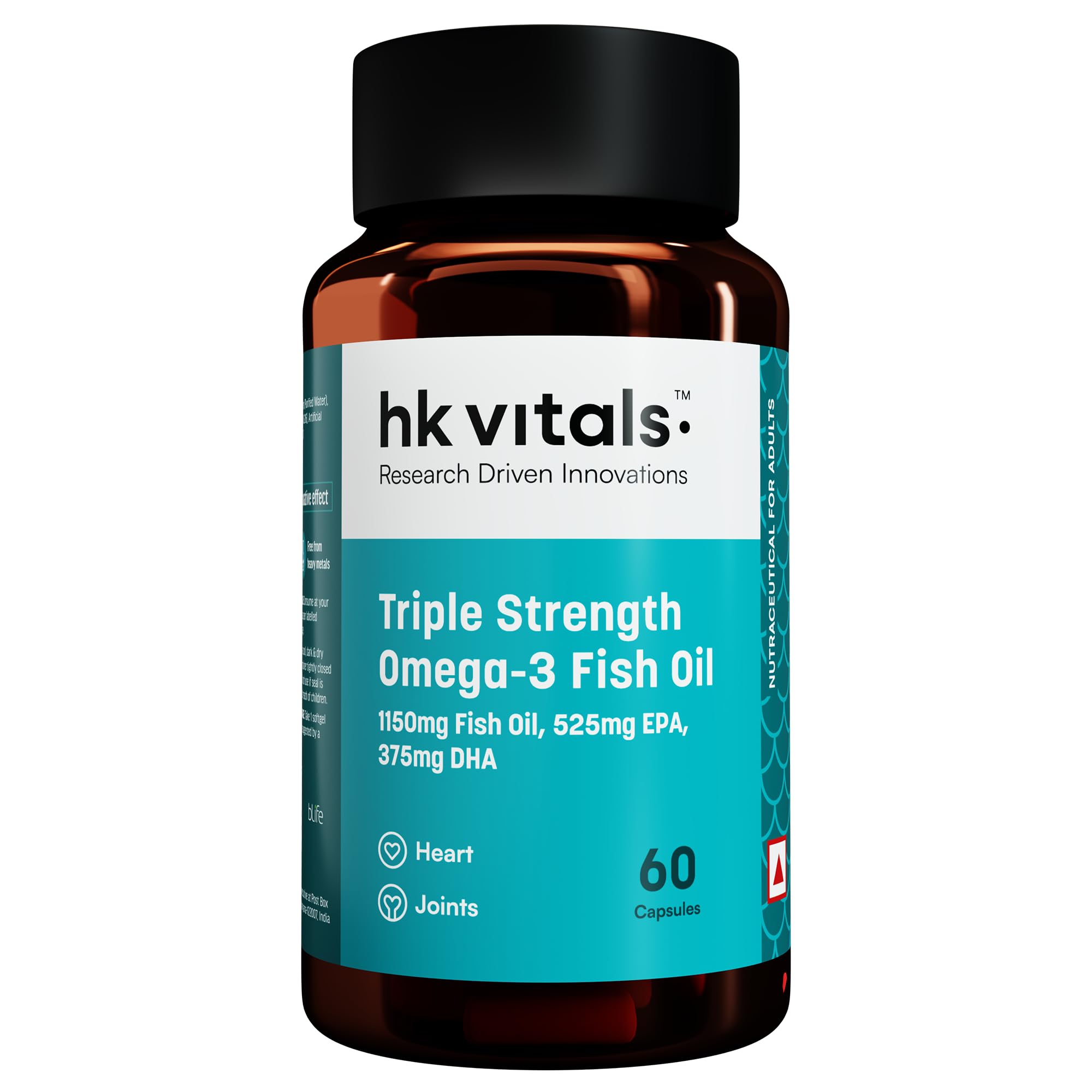 HealthKart hk vitals Triple Strength Omega-3 Fish Oil Supplement (60 Capsules) | For Men and Women 525mg EPA & 375mg DHA | For Healthy Heart & Joints