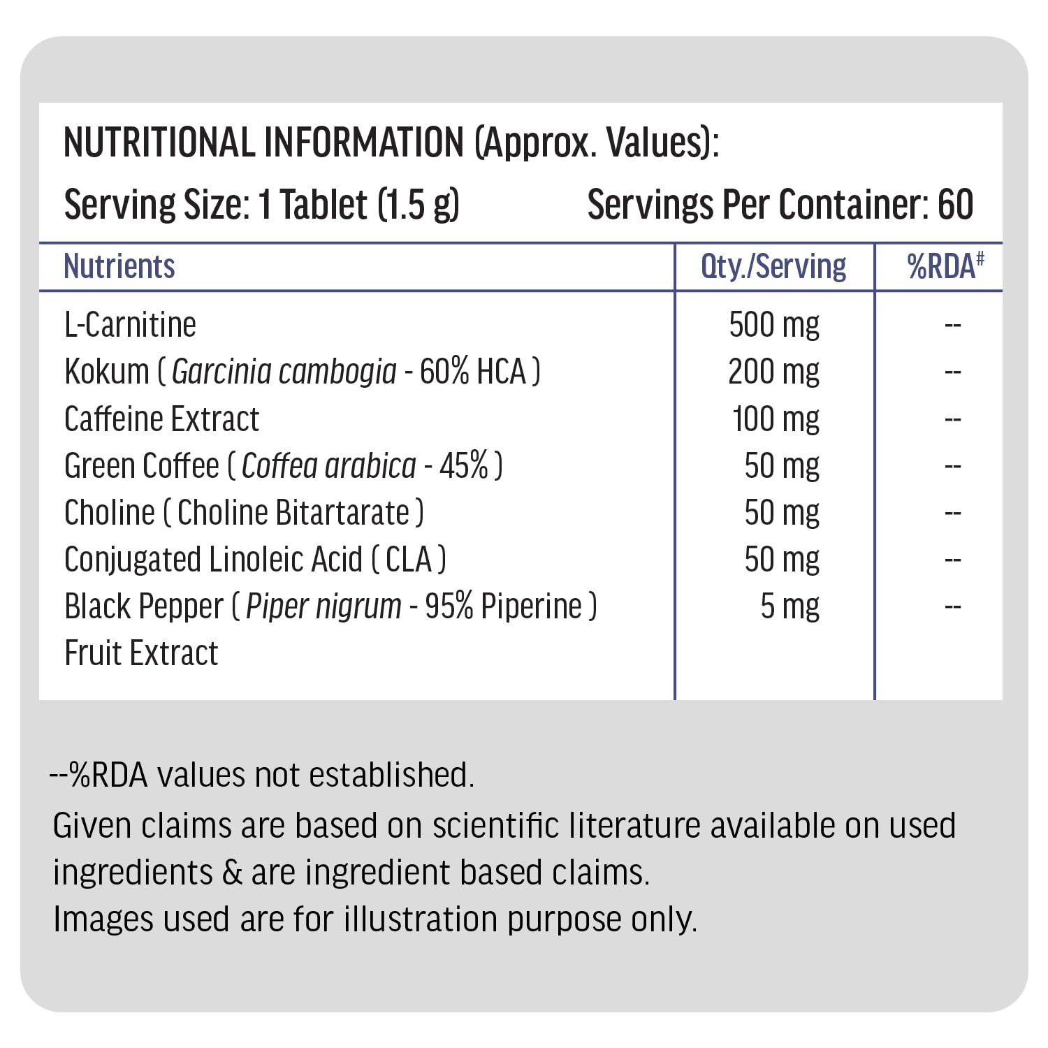 HealthKart hk vitals Fat Burner (60 Tablets) | With L-Carnitine Garcinia Cambogia & Caffeine | Supports Weight Management & Fuels Metabolism