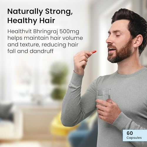 Healthvit Bhringraja 500mg - Best In Hair Care | Delivers The Powerful Hair Strengthening Qualities | Effective For Blood Purification | 100% Natural & Herbal | 60 Capsules