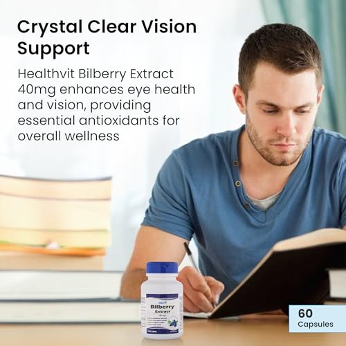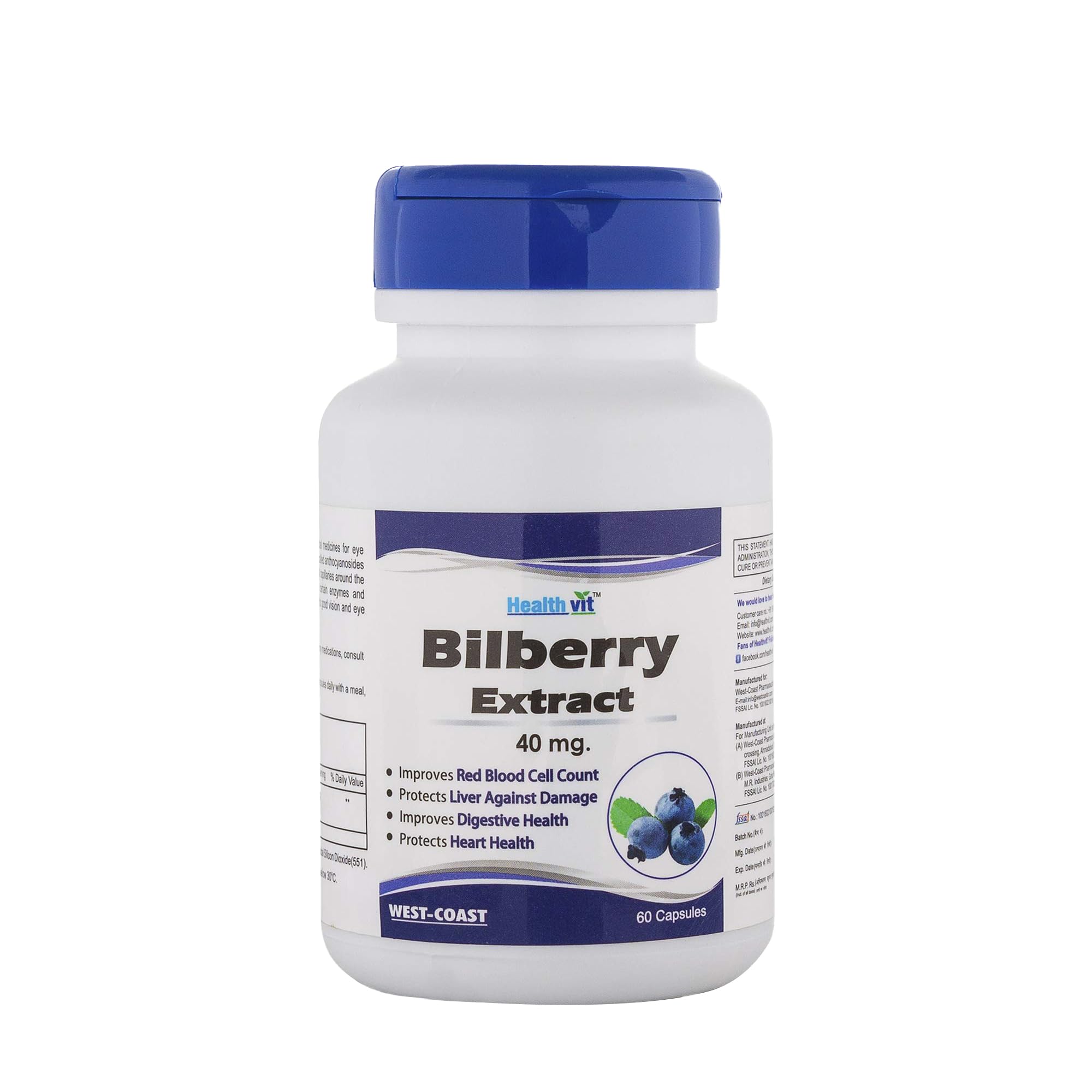 Healthvit Bilberry Extract 40 mg Capsule | Eye Health Supplement for Healthy Vision | Antioxidant Rich - Pack of 60 Capsules