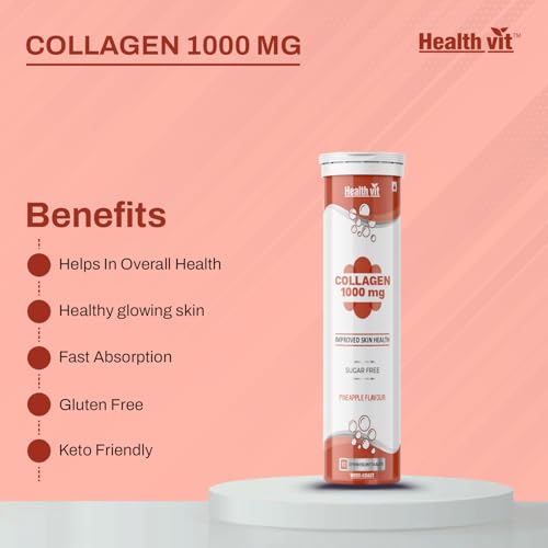 Healthvit Collagen 1000mg Collagen Peptides for Skin, Thick Hair, Stronger Nails and Joints - Sugar Free 10 Effervescent Tablets Pineapple Flavor
